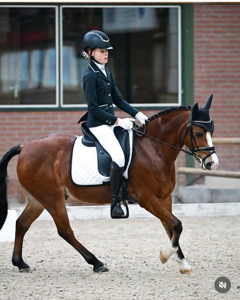 With a heavy heart, we offer: Our sweet and lovable Ctje (Cesar) A pony to truly fall in love with and become the best of friends! ❤️❤️ Ideal for children to learn riding with sensitivity, using gentle aids and lots of feel. Because our daughter has now outgrown him. Ctje is an 11-year-old, tall forward-going B-pony gelding, measuring 1.26.5 meters. He competes in M1 dressage and 60 cm jumping. Ctje is a handsome pony who always enjoys working. He is quite forward-going, does not buck or rear, but is a somewhat sharp and sensitive pony, responding lightly to aids. Furthermore, Ctje is a very cheerful, sweet, attentive, and affectionate pony, often acting as a little clown in the stable. He craves attention and loves lots of cuddles. He is flexible and responsive, well-behaved on the leg, and is familiar with exercises up to M1 dressage. He has correct, beautiful gaits and moves very forward. In the arena, he also performs well forward, though not hot, and in jumping lessons, my daughter has jumped 70/80 cm with him. Ctje is traffic-safe and well-behaved on outdoor rides. He has no shoes and has recently been to the dentist and wormed. A healthy and strong pony. Achievements: - Utrechts indoor reserve champion B dressage - Utrechts indoor champion L2 dressage + participation in the Dutch National Championships - 3rd place at the Utrecht Championship in 50 cm jumping We are looking for a 5-star home for Ctje. We value daily care from experienced horse people, and Ctje is less suitable for complete beginners, especially very timid or insecure riders. Including jumping and dressage saddle and blankets. Are you searching for a handsome, sweet, and forward-going all-round B-pony for an ambitious rider/young rider to shine with in competitions? Then get in touch! More information: Jolanda Boere 0614577022