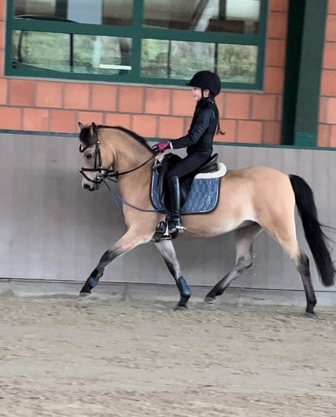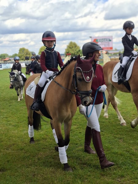 Zum Verkauf steht ein 15jähriger charmanter Welsh-B Wallach, geboren im Jahr 2011. Mit seinem freundlichen und sehr aufgeschlossenem Wesen und seiner Bewegungsfreude ist er ein idealer Partner für ambitionierte und mutige Nachwuchsreiter, die Spaß an einem temperamentvollem Pony haben. Renzo (genannt Pepino) überzeugt durch seine seine liebe Art im Umgang und Neugierde. Wenn man ihn ruft kommt er immer angetrabt. Er ist mutig und selbstbewusst und weiß sich zu präsentieren. Derzeit wird er von einer 13jährigen Reiterin in der Dressur und in Stangen- und Springstunden gearbeitet und auf seinen ersten Parcoure vorbereitet. Regelmäßig nimmt er beim Freispringen teil und zeigt hier große Freude und Potenzial (max. 110 cm). Ab und zu zeigt er die Tendenz zum "überspringen". Bei angemessenem Tempo ist das beim Springen unter dem Sattel aber gut zu sitzen. Beim Spazierengehen im Gelände ist er sehr brav und anständig. Er zeigt sich hier mutig und unerschrocken. Wir könnten ihn uns auch gut als Fahrpony vorstellen. Das wurde aber bisher nicht von uns ausprobiert. Pepino ist topfit, robust und war bisher immer gesund. Keine Krankheiten, oder gesundheitliche Einschränkungen sind bekannt. Die Zähne wurden regelmäßig kontrolliert und er ist turnierregelkonform geimpft. Bei uns steht er in einer Box mit täglich Paddock und im Sommer stundenweise auf der Koppel gemeinsam mit unserem Wallach. Hier ist er verspielt und braucht einen Partner, der damit umgehen kann. Aufgrund seiner Bewegungsfreudigkeit können wir uns auch gut einen Offenstall mit passenden Partnern vorstellen. Er trägt vorne Eisen. Warum geben wir einen so tollen Kerl ab? Wir haben ihn vor 2 Jahren für unsere jetzt 6jährige Tochter als "Kinderpony" gekauft und mussten aber leider feststellen, dass er für ein so junges und unerfahrenes Reiterlein zu viel Temperament und Go hat. Das Reiten an der Longe klappt sehr gut aber zum freien Reiten reicht es noch lange nicht. Unsere Empfehlung wäre ein mutiger und ambitionierter jugendliche Reiter, der bereits gut im Sattel sitzt und auch weiß, wie man sich durchsetzt. Ab und zu fragt Pepino beim Reiten seine Grenzen ab - nach Klarstellung läuft er aber wie am "Schnürrchen". Dennoch haben wir in den letzten beiden Jahren die Zeit mit vielen wunderschönen Momenten und auch Erfolgen mit Pepino erleben dürfen. Er wurde von unserer damals 4-5jährigen Tochter in der Ponyführzügelklasse regelmäßig auf Turnieren vorgestellt, wie z.B.: *1. Platz bei den YoungTalents in München Riem 2024 *3. Platz beim Nürnburger Burg Pokal im Rahmen der Pferd International in München sowie vielen weiteren vorderen Plätzen. Achtung: Auch hier zeigt er sein Temperament ist aber immer händelbar. Aufgrund seiner sportlichen und eher zierlichen Statur empfehlen wir ein maximales Reitergewicht von 55 kg und eine Größe von maximal 165 cm. Bei Interesse oder für weitere Informationen stehe ich gerne zur Verfügung. Ein persönliches Kennenlernen ist jederzeit möglich.