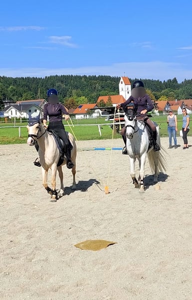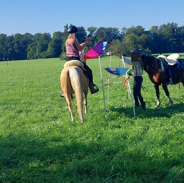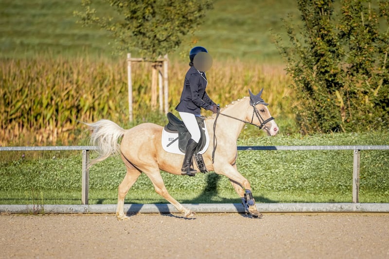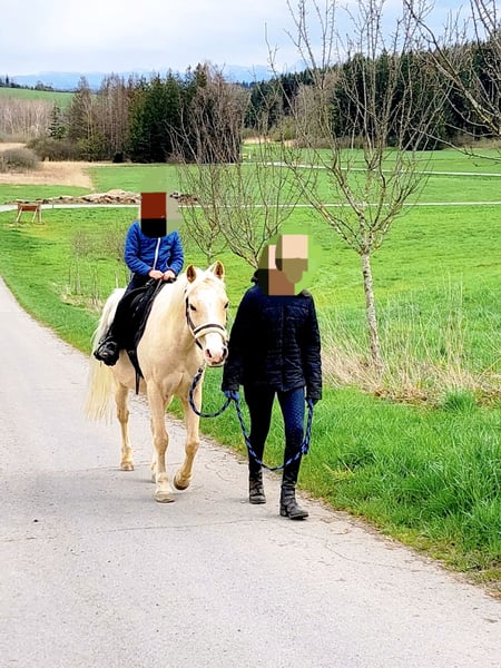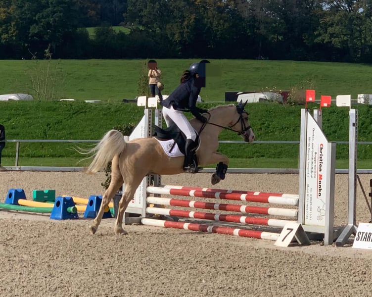 Wir verkaufen schweren Herzens und nur umständehalber unser super tolles Palomino Ausnahmepony. Er ist sehr gut und fein geritten. Filou ist ein absoluter Allrounder, sowohl englisch geritten als auch western. Er ist Gelände- und Verkehrssicher, sowohl alleine als auch in der Gruppe. Er ist sehr nervenstark, was sich schon einige male bei Orientierungsritten ausgezahlt hat und was ihm mega viel Spaß macht. Auch im Breitensport beim Action - und Präzesionsparcours und bei Gelassenheittsprüfungen macht er mit Freude mit. Er ist in den letzten 2 bis 3 Jahren auf ein paar Turnieren in der Dressur auf E Niveau, Reiterwettbewerb, Spingreiterwettbewerb jump and run und ein bis zwei E- Springen gestartet. Er hat einige Westernabzeichen gemacht, Horsemanship, Trail, Pleasure, Geländeprüfung und kann ohne Probleme bis zum Bronzenen Westernabzeichen geritten werden. Wir haben mit ihm sehr vielseitig und abwechslungsreich gearbeitet. Er geht gut an der Longe, liebt das Gelände, kennt Dualaktivierung sowohl vom Boden aus als auch geritten, Stangentraining, Freiarbeit, Gelassenheitstraining, spazierengehen,... Er kann auch ein paar Kunststücke. Seine größte Stärke ist seine Gelassenheit und das Gelände. Er ist kein Buckler oder Steiger. Er ist bei der FN als Turnierpony eingetragen und auch bei der EWU registriert. Er wurde regelmäßig geimpft und entwurmt, Zähne regelmäßig kontrolliert und auch frisch gemacht, hat sehr gute Hufe, ist brav bei der Hufpflege (er ist Barhuf) und geht sehr gut in Hänger. Ich denke er wäre auch zum Fahren geeignet. Filou ist 16 Jahre alt, aber nicht verbraucht, gesund und topfit, da wir sehr pferdefreundlich und nicht zu viel aber auch nicht zu wenig mit ihm gearbeitet haben. Er ist 1,35 m und kein Gewichtsträger (das Mädchen auf den Bildern ist 16 bzw 17 Jahre alt, ca 1,66 m groß und wiegt ca 50 bis 53 Kilo) Sie reitet ihn seit sie 10 Jahre alt ist.. Daher suchen wir für ihn einen kleinen leichten Erwachsenen oder ein Kind, dass gut reiten kann oder mit guter Unterstützung von pferdeerfahrenen Eltern begleitet wird. Filou wird nur in allerbeste Hände gegeben an Menschen mit Pferdeverstand, die immer fair und liebevoll mit ihm umgehen, ihn wertschätzen und wo er hoffentlich einen Endplatz hat. Er wird nicht an einen Schulbetrieb oder Händler verkauft. Filou ist im Sommer Goldfarben (etwas dunkler) und im Herbst/Winter wird er ganz hell. Er kennt sowohl Offenstall als auch Boxenhaltung. Bei Interesse können gerne auch Videos per WhatsApp geschickt werden. Probereiten ist nach Absprache möglich, gerne auch mehrmals. Platz vor Preis. Mehr Infos zu ihm und Gründe für den Verkauf gerne per Telefon.