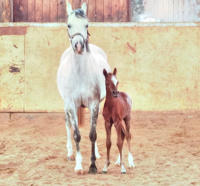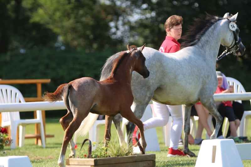Showman is the 3rd foal out of Samorens Katinka by Waxwing Perrin x Glansevin Graffiti. He was the winning Welsh foal at the foal show and took 4th place at the Westphalian Small Horse Show in Münster. His sire Santiago was the champion foal at the Westphalian Small Horse Show in Münster last year and the year before last. He already has several licensed sons and offspring who are internationally successful up to advanced (S) level. Santiago's sire Schwalmprinz was reserve champion at the German Welsh Show and his grandsire won the Royal Welsh Show three times.