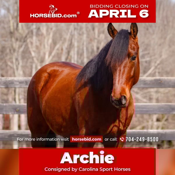 🌟𝑨𝒑𝒓𝒊𝒍 𝐀𝐋𝐋 𝐒𝐓𝐀𝐑 𝐋𝐈𝐍𝐄𝐔𝐏🌟 Happening now thru MONDAY | APRIL 6th - Available EXCLUSIVELY on HorseBid's website! For more details and to register visit: www.Horsebid.com CONSIGNOR CONTACT: Carolina Sport Horses 704-249-8500 LOCATION: Clover SC BREED: Welsh x QH crossbred REGISTERED: No COLOR: Bay HEIGHT: 14.3 AGE: 5 GENDER: Gelding Archie is a standout 14.3-hand Quarter Horse x Welsh Cross with the athleticism, bravery, and presence to make every ride exciting. He is built for the rider who wants to have fun, take on new challenges, and enjoy a horse that truly loves his job. Archie is safe, bold, and incredibly athletic. He approaches his work with confidence and enthusiasm, and he has never seen a jump he couldn’t clear. He naturally rides in a frame and shows all the qualities needed to become a serious jumper candidate, offering both scope and rideability. Outside the ring, Archie continues to impress. He is capable of hunting first flight and is a pro on the cross-country course, handling varied terrain and obstacles with ease and confidence. His bravery and athletic ability make him a reliable partner whether you’re schooling, competing, or simply enjoying a spirited ride. Adding to his appeal, Archie is a true head-turner. He has a beautiful mane, striking color, and is easily one of the flashiest movers we’ve had in the barn this year. He combines eye-catching movement with a confident, willing attitude that makes him impossible to overlook. If you’re looking for a sporty, athletic, and fun partner who is brave, capable, and ready to shine across multiple disciplines, Archie is an exceptional choice. Archie is up to date on vaccines, farrier and teeth. He’s ready to go! Text or Call 704-249-8500