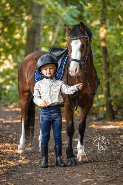 Mit schwerem Herzen bieten wir unser allerliebster Kinderpony an High Flown’s Ben&Jerry 6 Jahre alt 120 cm groß Benny ist wirklich der allerliebste und schönste Kinderpony! Bereits im Alter von drei Jahren hat er unseren Mädchen das Reiten beigebracht, und in den letzten drei Jahren haben sie mit ihm die schönsten Abenteuer erlebt – Ausritte, Verkleidungspartys, Ausflüge in den Wald und ans Meer sowie unzählige Bixie-Wettkämpfe. Er macht alles stets brav und ist zu 100 % zuverlässig, auch für die kleinsten Reiter. Mit einem begeisterten Reitschüler kann man nächste Woche eine L-Prüfung starten oder eine Springparcours absolvieren, und für einen Anfänger ist es ebenso einfach, aufzusteigen und loszureiten. Er passt sich voll und ganz an den jeweiligen Reiter an. Qualität, Aussehen und Zuverlässigkeit – alles, was man in einem Kinderpony sucht! Vater: Paaskamp’s Princenhage Mutter: (Angabe fehlt)