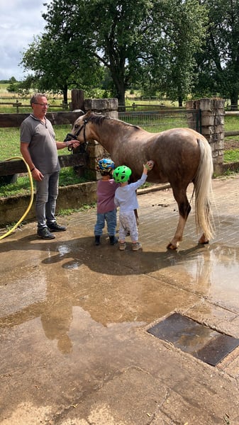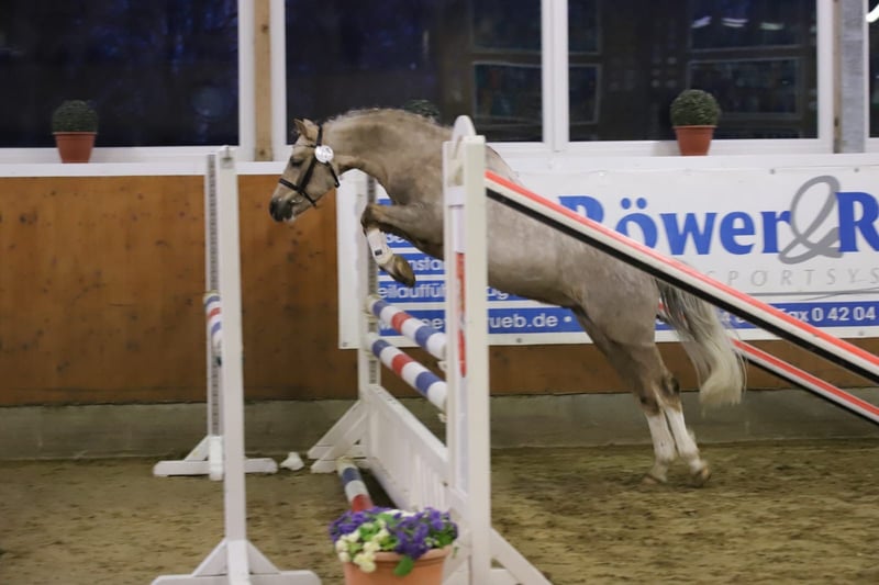 Manche Ponys sind einfach etwas Besonderes – und Wikings Wallstreet gehört definitiv dazu. Dieser wunderschöne Wallach zieht nicht nur durch seinen ausdrucksstarken Typ alle Blicke auf sich, sondern verzaubert auch mit einer faszinierenden Eigenart: Zum Fellwechsel verändert er seine Farbe. Er ist nicht nur schön, sondern auch talentiert: Als gekörter Hengst überzeugte er mit drei tollen Grundgangarten. Das Freispringchampionat gewann er gegen Großpferde und bekam die Wertnoten 8,0 für den Galopp und die 9,0 für Vermögen und Manier. Am Sprung zeigt er auch mit Reiter echtes Herz und Können Mit unseren Kindern war er Seriensieger in Führzügelklassen – ein Beweis für seine Zuverlässigkeit. Ob im Gelände, auf dem Reitplatz oder im täglichen Umgang zeigt er keine Unarten. Wenn du ein Pony suchst, das Charme, Qualität und Persönlichkeit vereint, dann ist Wikings Wallstreet genau der Richtige für dich. Er wartet auf jemanden, der seine Einzigartigkeit zu schätzen weiß.