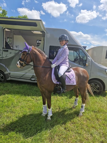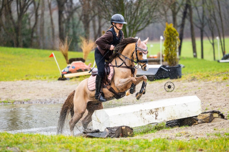 Unser lieber Wynswood Elfie WNE freut sich darauf, einem neuen Reiter alle Feinheiten des Reitsports beizubringen! Elfie ist ein 9-jähriger Wallach. Er ist 130 cm groß (ohne Hufeisen) und wurde vielseitig von meiner Tochter ausgebildet. Wir haben ihn seit seinem dritten Lebensjahr und haben mit ihm inzwischen alles gemacht. Dressur: Er ist in M1 klassifiziert und hat gewonnen. Er zeigt sich leicht zu reiten, hat angenehme Gänge und eine sehr schöne, versammelte Galoppade. Er lässt sich sehr gut erweitern und erhält dafür oft hohe Punktzahlen! Auch Seitengänge meistert er mühelos. Springen: Elfie wurde bis 60 cm hoch gesprungen, besitzt aber noch weiteres Potenzial. Er erhält häufig hohe Stilnoten, und im Stechen kann er richtig schnell sein. Cross: Seit Kurzem haben wir mit Crosstraining begonnen, das er super aufnimmt. Neben seiner sportlichen Eignung ist Elfie auch ein echter Kinderpony, mit dem man viel Spaß haben kann. Ohne Sattel, ohne Zaum, bei Waldritten, Strandritten – alles liebt dieser Pony! Und er macht alles äußerst brav. Er ist nie nervös oder heiß, nie gemein. Bocken, Scheuen oder wegrennen sind ihm fremd. Auch mit unerfahrenen Kindern ist er super lieb und passt sich vollständig an. Wenn kleine Kinder ihn beim Hoppeln versehentlich in den Mund nehmen oder nicht klar mit Bein oder Peitsche sind, macht ihm das nichts aus. Er ist eher langsam als schnell! Derzeit steht er in unserer Paddock Paradise mit zwei anderen Wallachen und einer Stute. Elfie ist im Herdenverband freundlich und nicht dominant. Elfie ist sowohl für einen Anfänger als auch für einen Fortgeschrittenen geeignet. Er passt sich schnell an!
