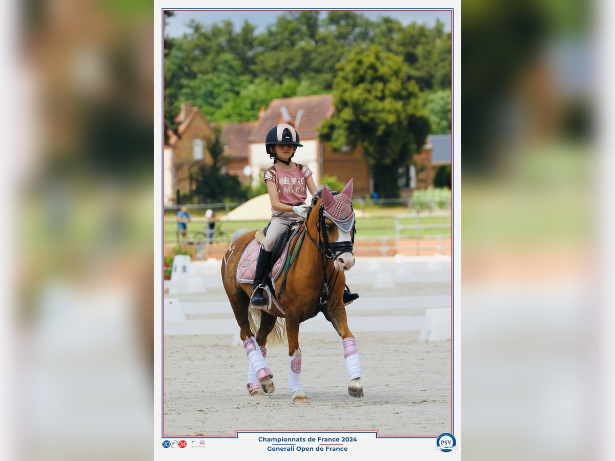 2014, welsh , palomino pony with amazing blue eyes - Well-behaved when loading and traveling, as well as with the farrier - Enjoys hacking out - Suitable for both dressage with tests up to 72% and jumping with many clear rounds at 60cm. Invited by the French federation for a selection meeting, she was the smallest pony with even the youngest rider. - Show experience - Up to date on vaccinations, deworming, phisio, dentist etc. - For further inquiries +33615186574