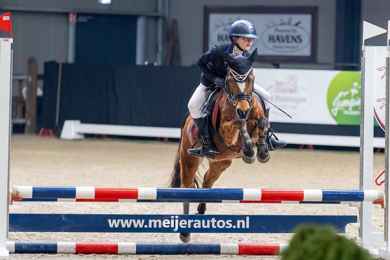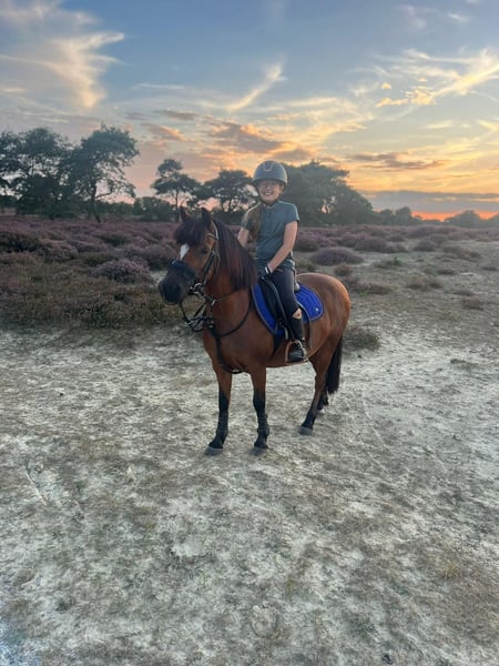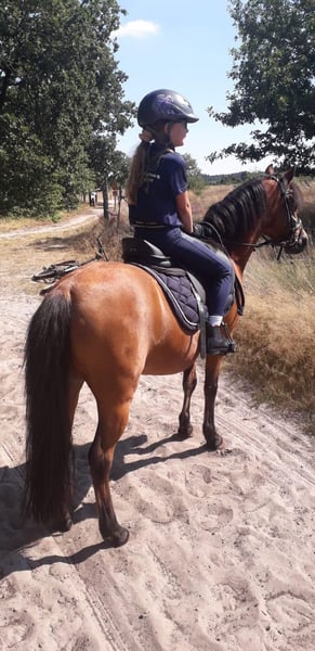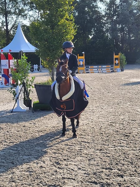Cuppers Wynona (roepnaam: Nona) Nona is een prachtige Welsh merrie van 15 jaar oud die wij inmiddels bijna 5 jaar in ons bezit hebben. Onze dochter heeft haar gekregen toen ze bijna 8 jaar was en is inmiddels uit haar gegroeid. Daarom zijn wij op zoek naar een nieuwe, passende ruiter of amazone. Nona is een echte leerpony met veel ervaring. Onze dochter heeft met haar leren rijden en samen hebben ze zich ontwikkeld tot een mooie combinatie. Ze heeft altijd netjes meegelopen in zowel ponylessen als springlessen en gaat graag mee op buitenrit. Daarnaast is ze meerdere keren mee geweest op ponykamp en heeft ze veel wedstrijdervaring opgedaan, zowel in de dressuur- als springsport. In de omgang is Nona braaf en betrouwbaar. Hoefsmid en tandarts vindt ze geen probleem en ze loopt makkelijk de trailer op. Onder het zadel is ze werkwillig en voorwaarts. Ze is een fijne springpony, maar komt het beste tot haar recht met een consequente en iets gevorderde ruiter tijdens wedstrijden. Nona kan soms wat pittig zijn, maar ze is daarbij altijd eerlijk en niet gemeen. Juist hierdoor is ze een pony waar je veel van kunt leren. In de dressuur heeft ze met de juiste begeleiding zeker nog doorgroeimogelijkheden, al lag de focus bij onze dochter voornamelijk op het springen. Resultaten: - Jumping Tolbert indoor: 3e plaats 60 cm (2026) - IICH Groningen: 2e plaats 60 cm (2025/2026) - Indoor Hartje Drenthe: 1e plaats L1 (2025/2026) - Dalerveense Ruiterdagen: 3e plaats 50 cm & 1e plaats 60 cm (2025) - Jumping Tolbert outdoor: 1e plaats 50 cm (2024) - Reservekampioen L1 Indoor kampioenschappen (2024) Algemene gegevens: - Merrie - Geboren in 2011 - Welsh pony - Stokmaat: 118,5 cm - Geklasseerd in springen: 70 cm - Geklasseerd in dressuur: L1 - Dressuur L2 gestart Wij zoeken voor Nona het liefst een ruitertje met enige ervaring, die met haar aan de slag wil en eventueel verder wil groeien in de sport. Wij zoeken een liefdevol, 5-sterren huis waar ze alle aandacht krijgt die ze verdient. Wij spoelen haar hooi af en ze staat op zaagsel en gaat het liefst zoveel mogelijk naar buiten. Wij verkopen Nona inclusief: - Zadel wintec 15,5 inch - Hoofdstel - Diverse dekjes en halsters - Bucas outdoor deken met liner 250 gram & hals - Outdoor deken 400 gram - Staldeken - Fleecedeken Interesse of voor meer informatie: Marjolein 06-39555673