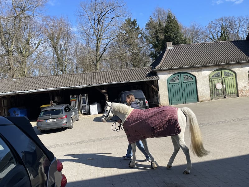 Elina ist eine außergewöhnlich hübsche Stute mit holländischer Abstammung mit siegreichen Eltern und eigenen Siegen im Zucht-Verband. Elina ist eine liebenswerte, hübsche Stute, die sich auch für kleinere Turnierauftritte eignet. Sie ist schon Reiterwettbewerb, E Dressur gegangen und wurde von Kindern freizeitmässig gesprungen. Für Elina stellen wir uns eine liebe und kümmernde Familie vor, wo sie exklusiv gepflegt und geliebt und geritten wird und einen lebenslangen Platz erhält. Führzügelwettbewerbe hat sie mit Bravour gemeistert und ein wunderschönes Bild abgegeben. Elina hatte vor 2-3 Jahren aufgrund ihrer Feinfühligkeit von den Hufen eine Rehe, welche mit dem richtigen Beschlag nicht mehr aufgetaucht ist. Elina läuft seit zwei Jahren ohne Einschränkungen im Unterricht mit und hat daher bewiesen, dass sie ein zuverlässiges, reitbares und gesundes Pony ist: