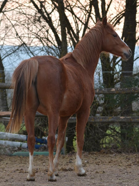 Puledra giovane di Welsh B, castrona di colore castagna vivace, direttamente dall'allevatore