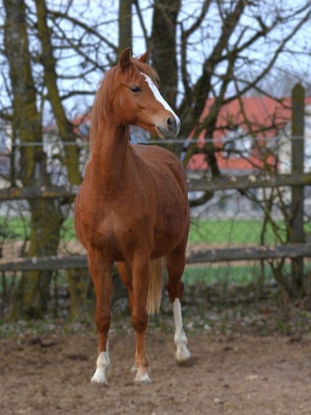 Kienbergs Dalia Deluxe ist eine wunderschöne Welsh B Stute mit traumhaften Gängen und einem sehr typvollen Erscheinungsbild. Als Fohlen wurde sie prämiert. Ihr Vater ist der bewährte Rapphengst Cadlanvalley Deluxe, die Mutter ist eine Verbandsprämienstute von Breeton Toy aus unserer Zucht. Dalia ist Alters entsprechend erzogen, bei uns rangniedrig und sehr freundlich im Umgang. Ein aktuelles Video ist vorhanden und kann auf Anfrage gerne zugeschickt werden. Ihr Vollbruder (Kienbergs Cooper bei Rimondo) läuft erfolgreich im Sport, auch mit Kindern. Eine Vollschwester ist Verbandsprämienstute und sehr erfolgreich bei uns in der Zucht. Wir haben aktuell auch noch weitere Ponys zu verkaufen (zwei Hengstjährlinge siehe andere Anzeige) und auch ein total menschengezogenes Hengstfohlen aus 2026 in Rappisabell und eine zweijährige Stute in Rappisabebell). Bei Interesse freuen wir uns auf Ihre Anfrage und zeigen Ihnen unsere Ponys gerne unverbindlich in entspannter Atmosphäre bei uns auf dem Gestüt.