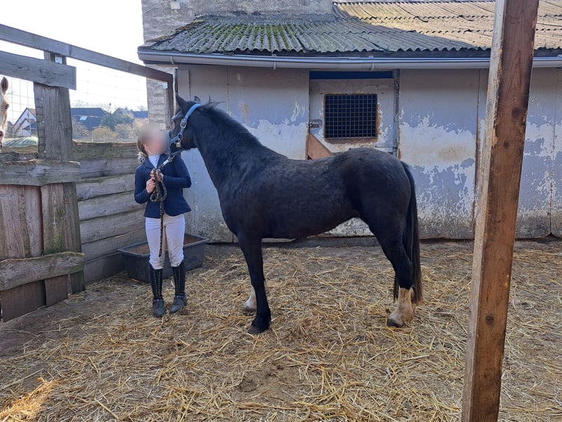 Wir verkaufen unsere herzensgute, bildhübsche 4j. Welsh B Stute Blacky. Sie ist mit Kindern gross geworden und kennt nichts anderes als den täglichen Umgang mit ihnen. Obwohl sie noch jung ist, ist sie stets lieb im Umgang und beim Reiten. Am liebsten mag sie das Springen. Mit einer unglaublichen Übersicht zum Sprung und grosses Talent mit vieeeeel Vermögen springt sie liebend gerne mit meiner Tochter. Dran vorbei oder stehen bleiben kennt sie nicht. Dabei steht sie an unsichtbaren feinen Hilfen. Auch an der Longe ist sie super ausgebildet. Schritt Trab Galopp unter Anfängern ist sie gewöhnt. Sie geht brav mit Ausbindern und hört 100 Prozent auf den Longenführer so dass die kleineren Reitanfänger ihre Sitz und Turnübungen machen können. Sie liebt es zu kuscheln, steht brav beim Putzen und Fertigmachen. Ein grosser, bildhübscher Schatz mit ganz viel Zukunft auf den Turnierplätzen. Gerne verschicken wir weitere Videos unter 01794883115 per WhatsApp. Vg