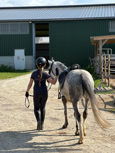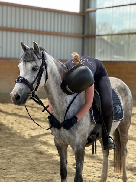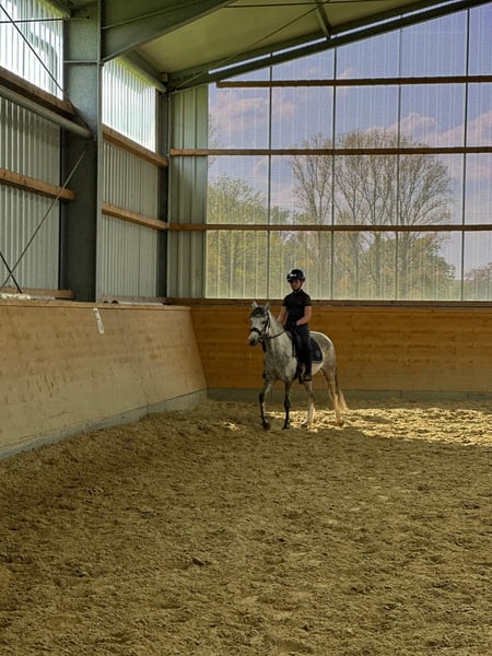 Bellissima amazzone di 7 anni, di allevamento propio, cerca una piccola amazzone per tempo libero o sport amatoriale. Juliette è socievole con il branco, molto buona e affettuosa. Va da sola con una amazzone di 12 anni in passeggiata e può essere condotta, spazzolata e montata anche da bambini più piccoli. Transporta da sola il carro e cerca sempre di fare tutto nel modo giusto. Grazie alla sua ottima genealogia, Juliette è anche interessante come cavalla da riproduzione. Attualmente si trova in addestramento vicino a Mönchengladbach. Informazioni via email o telefonicamente al 015224581202.