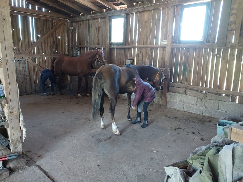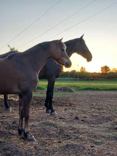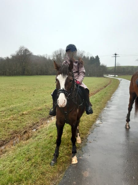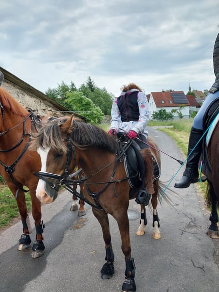 Tilly ist eine hübsche, temperamentvolle und sportliche Welsh B Pony Dame. Sie hat sehr gute GGA mit einem fleißigen Vorwärtsdrang. Die kleine Maus ist zutraulich und freizeitmäßig gut ausgebildet. Sie wird seit 3 Jahren geritten, kennt sowohl Platz-Arbeit, Kinderreiten als auch flotte Geländeritte. Decken, Gamaschen, Sattel mit Schweifriemen und Vorderzeug sind Routine für Sie beim Reiten in der Gruppe und allein. Sie ist Schmiedefromm, geimpft und entwurmt. Sie steht in einer gemischten Offenstall Gruppe. Tilly kennt Hund, Katzen, Traktor und Quad. Ein sportliches Traum Pony für Hobby oder Sport. Eine fleißige, zuverlässige und einsatzbereite Biene. Sicherlich auch im Fahrsport ein Erfolgsgarant- siehe Paasgespann mit Wallache. Wir geben sie nur ab, weil die Kinder groß sind und Pferde reiten, sie zum rumstehen zu schade ist. Kein Notverkauf. Wer sie Kennenlernen möchte, darf sich gern (telefonisch) melden. Weiteres Filmmaterial ist auf Anfrage vorhanden. Bei Bedarf kann die Ausrüstung gegen Aufpreis mit übernommen werden.