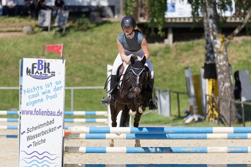 Pony Stute Jolene, 7 Jahre, 135 cm groß Jolene ist eine 7-jährige, hübsche und fein zu reitende Ponystute. Sie präsentiert sich als vielseitiger Allrounder mit dem Schwerpunkt im Springen und ist derzeit bis E-Springen siegreich. Jolene läuft Barhuf, ist regelmäßig geimpft, entwurmt und die Zähne wurden in regelmäßigen Abständen gepflegt. Im Schulbetrieb wird Jolene von fortgeschrittenen Reitschülern geritten, jedoch wünschen wir uns für sie feste Bezugspersonen. Aufgrund ihrer Sensibilität und ihres Ausbildungsstandes wird sie nicht als reines Anfängerpony verkauft, sondern sucht fördernde und fachkundige Hände, die sie weiterhin gezielt ausbilden und fördern. Ein vielversprechendes Nachwuchspony mit guter Einstellung und Entwicklungspotenzial.
