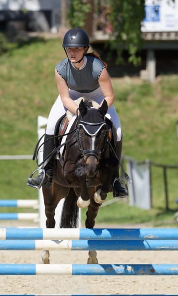 Pony Mare Jolene, 7 years old, 13.5 hh Jolene is a beautiful and well-behaved 7-year-old pony mare. She presents herself as a versatile all-rounder with a focus on show jumping and is currently successful up to E-level jumping competitions. Jolene is barefoot, regularly vaccinated, dewormed, and her teeth have been maintained at regular intervals. In riding lessons, Jolene is ridden by advanced students; however, we are looking for dedicated and experienced riders who can establish a stable bond with her. Due to her sensitivity and training level, she is not suitable for complete beginners but is seeking knowledgeable and caring hands to continue her education and development. A promising young pony with a good attitude and significant potential for growth.