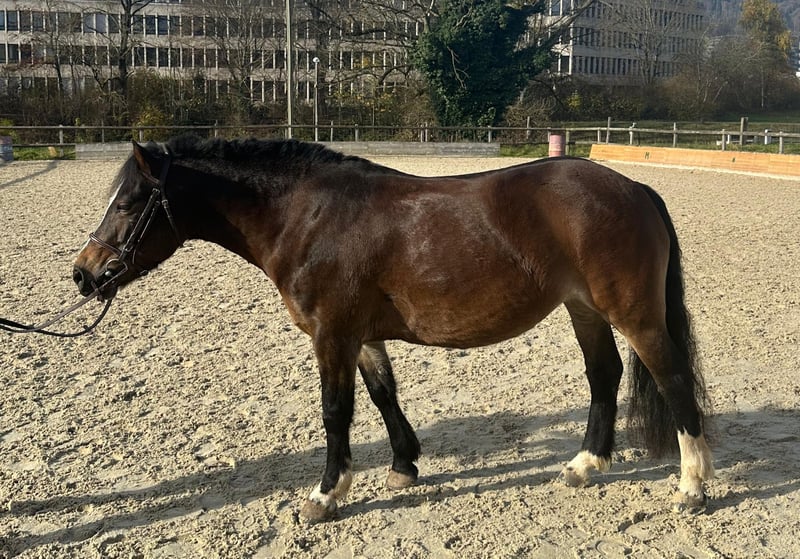 Motivierte Ponystute, mit viel Ausdauer. Für ihren starken Charakter braucht Reni eine erfahrene Person, die ihr Strukturen gibt. Sie kennt Bodenarbeit, ausreiten, longieren, dressurmässiges Reiten und kleine Sprünge. Mit klarer Führung kann Reni gut von Kindern geritten werden. Gruppenhaltung gewöhnt. Ihr Sommerekzem ist mit einer Decke gut händelbar. Grund für Verkauf: zur Zeit wird sie als Reitschulpony eingesetzt, eine feste Bezugsperson wäre für sie aber besser geeignet.