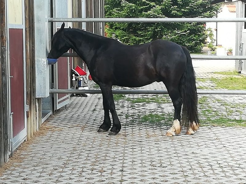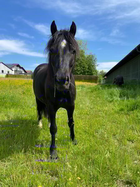 Rascal, my Welsh Pony gelding, is looking for a new home. He stands at 1.34 meters and was born in May 2016. Rascal has basic training in all three gaits and particularly enjoys hacking out. (Unfortunately, we don’t have enough opportunities for that!) He also shows increased motivation when working in the arena. He is a very sensitive pony and is searching for his human partner. Currently, Rascal has two young riders aged 13 and 15 as part-owners. He adapts well to riders up to a maximum height of 1.60 meters and weighing around 55 kilograms. With regular training and proper care, he copes very well with his allergic asthma and a knee band issue. Both improve significantly when he gets enough exercise and is inhaled with saline solution several times a week. At the moment, we work him four times a week, which he manages well, but he could handle more. Rascal lives with us in an open stable with two dominant Haflinger geldings. He enjoys leading lower-ranked horses and mares. Price is negotiable. A good home with plenty of movement and care is a priority in the sale negotiations. Further information gladly via WhatsApp; I am difficult to reach by phone. If seriously interested, we can arrange a viewing appointment at Tel. 0170 4729566.