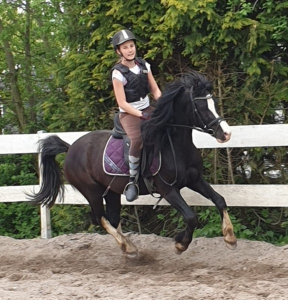 Un grande gelding gallese di tipo C. Nero con un volto espressivo e movimenti sopra la media. Un giovane con un grande potenziale per il tempo libero o lo sport. Si prevede che rimanga nella massa C gallese di 137 cm. È cresciuto in un'associazione di mandrie, vaccinato e sverminato ed è un vero e proprio eye-catcher. È cavalcato ed è cavalcato da una ragazza di 12 anni. Molto dolce e disposto ad imparare. Vale la pena guardarlo.