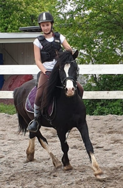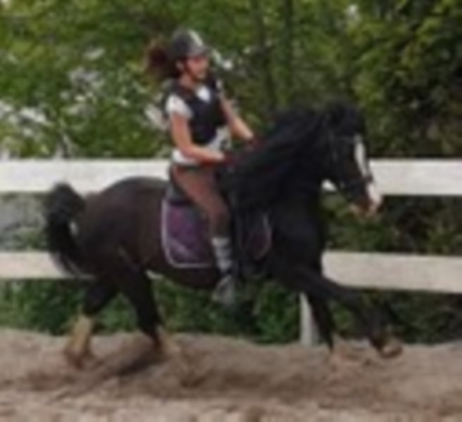 En stor walesisk C-typ valack. Svart med uttrycksfullt ansikte och rörelser över genomsnittet. En ung man med mycket stor potential för fritid eller sport. Han förväntas stanna kvar i den walesiska C-massan på 137 cm.? Han växte upp i herdföreningen, vaccinerade och avmaskade och är en riktig blickfångare. Är han riden? och rids av 12 år av m?dchen. Mycket söt och villig att lära sig. Det är värt att titta på.