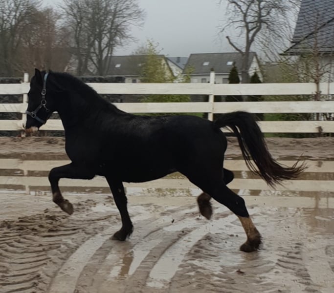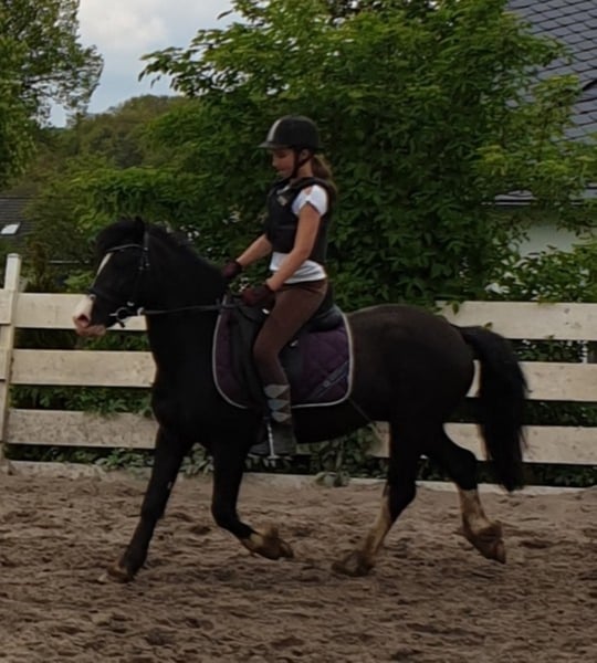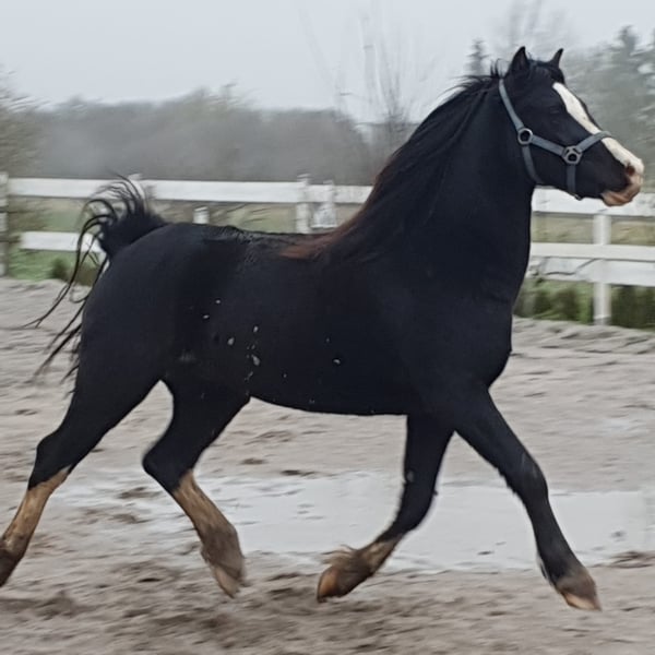 Ein toller im Welsh C-typ stehender Wallach. Schwarz mit ausdruckstarkem Gesicht und überdurchschnittlichen Bewegungen. Ein junger Mann mit sehr grossem Potenzial für die Freizeit oder den Sport. Er wird im Welsh C- Mass von 137 cm voraussichtlich bleiben. Er ist im Herdenverband aufgewachsen, geimpft und entwurmt und ist ein echter Hingucker. Er ist angeritten und wird von 12 jährigem Mädchen geritten. Sehr lieb und lernwillig. Anschauen lohnt sich.