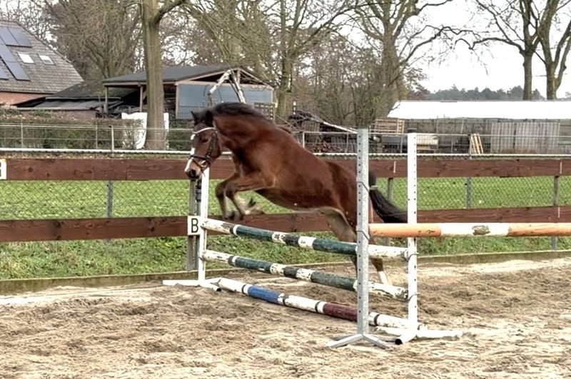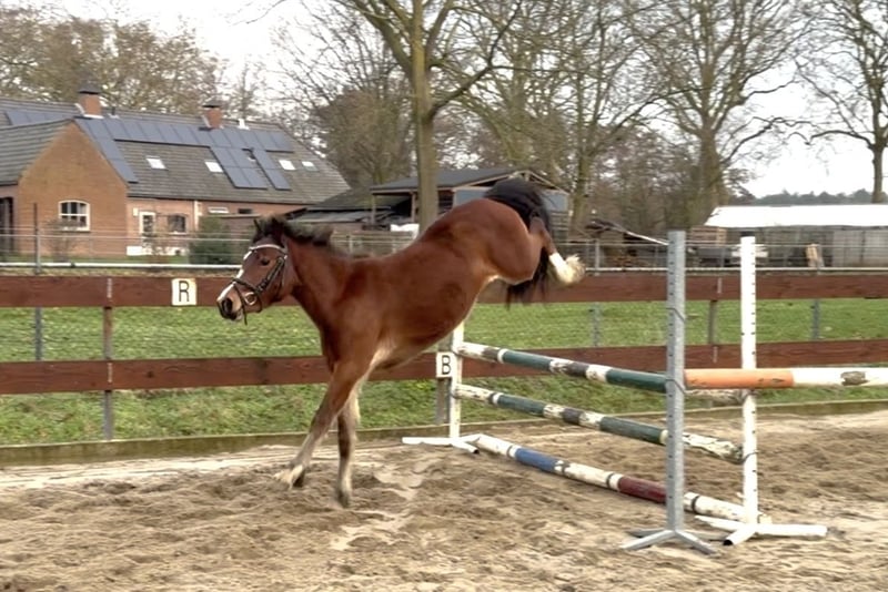 Nieuw huisje gezocht! Super brave pony! Ontzettend lieve en super brave 3 jarige C-pony Welsh ruin. Hij meet 1.30m en zal naar verwachting uitgroeien rond de 1.34m, gezien zijn leeftijd en hij nog wat overbouwd is. Zijn afstamming is: Willow Constantine x New Challenge’s Braveheart x Ridgehill Rhydian. Hij heeft hele goede gangen! Op de foto’s en filmpje lieten we hem voor de aller eerste keer los springen. Hij deed dit ontzettend goed en vond het ook leuk om te doen en toonde hierbij een hele goede achterhand. Ondanks zijn jonge leeftijd is hij echt super braaf! Hij heeft al wel een paar keer een stapritje aan de hand gedaan met een klein kindje op zijn rug, maar is verder nog onbeleerd. Hij kent dus wel al een zadeltje. Hij is heel makkelijk in de omgang, staat netjes stil tijdens het poetsen, kent het halster op en af doen, een dekentje en loopt dus ook braaf mee aan een touwtje. Hij komt meteen naar je toe in de wei en is ook heel sociaal naar andere paarden. Hij is ook braaf op de trailer! Hij heeft geen (stal)gebreken! Leuke kans voor iemand die een toekomstige sport- en kinderpony zoekt! Ook interessant voor de wagen in de mensport! Vaste prijs € 2250