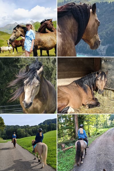 Bildhübscher Welsh C Wallach sucht ein neues 5* Zuhause Wir verkaufen aus div. Gründen unseren selbstgezogenen Welsh C Foresthill Jappeloup. Seine Falbfarbe, der wunderschöne Kopf und seine Ausstrahlung machen ihn zu einem Pony welcher jedem gefällt. Er wird im Mai 6 Jahre alt und steht daher noch am Anfang seiner Reitkarriere. Er läuft bereits sehr brav im Gelände und hat einen angenehmen Vorwärtsdrang. Auch in der Reithalle kann er problemlos in allen Gangarten geritten werden und durfte auch schon seine 1. Sprünge machen. Er steht aber klar noch am Anfang seiner Reitkarriere und muss auch noch vieles lernen. Er zeigt sich jedoch in allen Bereichen sehr lernwillig und mutig. Da er jedoch vom Charakter eher sehr schnell unsicher wird, ist er kein Kinderpony. Mit seiner Grösse von 136cm und seinem guten Fundament, kann er auch problemlos von einer Erwachsenen Person geritten werden. Jappeloup war bis Dezember 2024 noch Hengst, daher wäre eine Gruppe mit Wallachen ideal. Er ist bis ca. 1974 rein Welsh C gezüchtet und hat eine sehr gute Abstammung. Du solltest gute Reitkenntnisse haben und viel Zeit, ihm die Zuneigung geben zu können die er benötigt. – dann wird er ein richtig tolles Pony welcher mit Dir durch dick und dünn geht. Wir stellen Dir dieses tolle Pony gerne persönlich vor. Wir sind im Raum St. Gallen zuhause. Platz vor Preis.