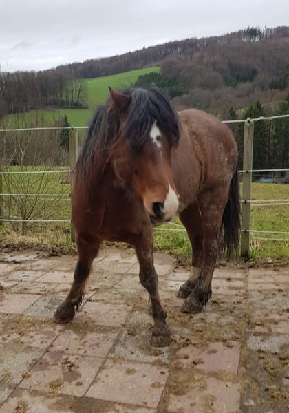 Bitte den ganzen Text lesen und bitte bei Fragen melden, damit wirklich alles geklärt. Danke. Leider müssen wir unseren Wallach Merlin - ein Welsh Cob C Ardenner Mix - abgeben, aber wir denken, es ist das Beste für ihn. Er hatte bisher einen etwa gleichaltrigen Kumpel, doch dieser ist nicht mehr bei uns und die anderen Pferde sind viel älter, so dass er da nicht richtig in die Gruppe passt und nicht zurechtkommt. Er braucht einen erfahrenen, geduldigen Pferdemensch. Wir suchen ein Zuhause, wo er endlich für immer ankommt und nicht wieder abgeschoben wird. Wir hatten ihn schon zweimal vermittelt und dachten, es wäre ein gutes Zuhause, doch beide Male wurde er nach 1/2-1 Jahr wieder zurückgegeben. Daher lest euch bitte alles gründlich durch, wenn etwas unklar ist, bitte nachfragen! Und bitte, bitte nur melden, wenn Merlin wirklich für IMMER im neuen Zuhause bleiben darf. Wir wollen ihm so eine Enttäuschung wie die letzten beiden Male nicht wieder zumuten. So, nun also zu Merlin: Geschlecht: Wallach Rasse: Welsh-C Tinker Mix Geboren: 12.06.2019 Stockmaß: 145 cm Ausbildung: angeritten, allerdings vor 3 Jahren, man muss also noch viel üben und Geduld und viel Zeit mitbringen, Tierarzt und Hufschmied sind kein Problem Charakter: sehr menschenbezogen (wenn man sein Vertrauen gewonnen hat), sehr sensibel und intelligent Sonstiges: Equidenpass ist vorhanden, geimpft ist er auch, kein Anfängerpferd Merlin ist ein sehr sensibles Pony. Man muss Geduld aufbringen, um sein Vertrauen zu gewinnen, aber wenn Merlin einem sein Herz schenkt, dann vertraut er einem auch richtig. Wenn er z.B. Angst hat, schaltet er generell seinen Kopf aus, gerät in Panik und läuft alles platt, was oder wer im Weg ist. Hat man sein Vertrauen, merkt man zwar das er immer noch Angst hat, man kann ihn dann aber dennoch langsam und vorsichtig vorbeiführen, ohne dass er davon stürmt. Aber wie gesagt, so ein Vertrauen aufzubauen braucht viel Zeit (und NEIN, viel Zeit bedeutet NICHT 2 Monate!).Merlin kennt das Fohlen-ABC (Halfter, Putzen, Tierarzt, Spaziergänge) und wurde vor ca. 3 Jahren angeritten, aber wirklich nur angeritten. Man muss mit ihm noch einiges üben, BEVOR man ihn reiten kann. Da er sehr sensibel ist, sollte man Geduld mitbringen und vorsichtig mit ihm umgehen. Er hat z.B. Angst vor Peitschen (seit wir ihn vermittelt hatten). Er ist aber auch sehr intelligent und kapiert recht schnell, wie etwas läuft. Er weis z.B. genau wo sein Futterplatz ist und dass er dort am besten einfach still wartet, dass der Futtertrog gebracht wird. Er hatte es recht schnell raus, dass das Futter so schneller kommt, als wenn man "Theater" macht. Ich wünsche mir für ihn ein Zuhause, wo er endlich ankommen kann und für immer bleibt. Der neue Besitzer/Die neue Besitzerin sollte sich viel Zeit nehmen, ihn kennenzulernen, sein Vertrauen zu gewinnen und dann langsam anfangen mit ihm zu arbeiten (zuerst nur Bodenarbeit, bevor es später zum Reiten geht). Und wenn ich "Zeit nehmen" schreibe, dann meine ich nicht 2 Monate, man sollte schon mehr Geduld aufweisen und es wirklich langsam angehen, bevor man mit ihm anfängt zu Reiten.Merlin braucht eine konsequente, aber sanfte Führung mit viel Geduld. Falls weitere Fragen offen sind, einfach melden. Probereiten ist natürlich nicht möglich (sollte nach meinem Text jedem klar sein), aber einem Besuch steht nichts im Wege.