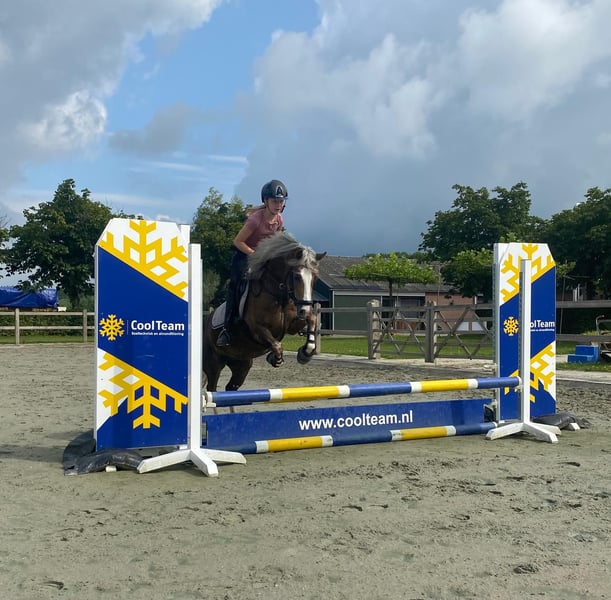 Due to the transition to a larger pony, this amazing sweet eye-catcher is for sale. 9-year-old mare measuring 1.34m Always cheerful and willing to work, also enjoys jumping We believe she is also suitable as a hunter pony Multiple regional champion and Dutch champion She is a teacher, adapts to the rider In short, a true children's sport pony Come by and fall in love with this star.