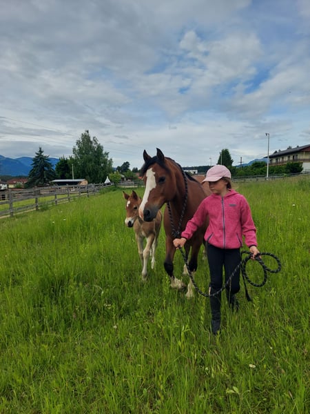 Wir suchen für unsere Nachzucht aus dem vorigen Jahr noch ein passendes Zuhause. Cindy stammt aus der Ponystute unserer Tochter Synod Glory (132cm) und wird deutlich größer werden als ihre Mutter. Der Vater Silberberg Hattrick war mit 148cm im Endmaß. Derzeit misst die im Mai 1 Jährige Stute 137cm. Die junges Stute ist absolut korrekt gebaut, rahmig und zeigt sehr schöne GGA. Sie ist absolut kopfklar, nervenstark, liebenswert und kennt Kinder in allen Lebenslagen von Geburt an und ist mit gleichaltrigen Fohlen aufgewachsen. Derzeit steht sie in einer gemischten Herde im Offenstall und kommt ab Mai wieder auf die Sommerweide. Cindy war noch nie krank und ist haltungstechnisch sehr unkompliziert. Cindy hat keinerlei Unarten und verhält sich dem Menschen gegenüber immer sehr respektvoll. Wir legen viel Wert auf korrekte Aufzucht, Mineralisierung, korrekte Fütterung, feinfühlige, konsequente Erziehung. Unsere Ponys haben noch nie schlechte Erfahrungen mit dem Menschen gemacht. Ebenso sind sie sehr vielen Eindrücken bei uns am Hof ausgesetzt, kennen bereits Straßenverkehr, Traktoren, blaue Planen, Pylone und vieles mehr. Wir wünschen uns für die junge Stute ein feinfühliges, pferdeerfahrenes neues Zuhause. Am besten mit Familienanschluss, damit sie in ihrem Leben noch viele Kinderaugen zu strahlen bring. Aufgrund ihrer Abstammung und Qualität würden wir uns auch Freuen, wenn sie irgendwann für die Zucht eingesetzt wird. Sie bring alles mit um ein tolles zukünftiges Kinder Reitpony zu werden und wird aufgrund ihres Körperbaus und Größe auch sehr gut von Erwachsen mitzureiten, auszubilden sein. Wir verkaufen sie nur sehr schwer. Auch unsere Kinder hängen an jedem Fohlen. Nur an Bestplatz abzugeben. Kein Notverkauf. Preisverhandlungen zwecklos.