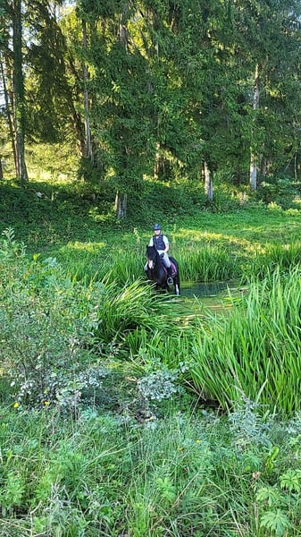 Welsh Cob Sectie C, hengst, 18 jaar, zwartbruin met vier witte benen, 1,34 m schofthoogte. Geschikt voor: dressuur - buitenritten - springen - fokkerij Op verzoek van de eigenaar: Lord William… …valt onmiddellijk op door zijn onvergelijkbare uitstraling en elegantie, en belichaamt het perfecte oorspronkelijke type van de Welsh C pony. Hij is afkomstig uit oude Engelse, degelijke bloedlijnen, wat zich in zijn hele uitstraling weerspiegelt. Een ongelooflijk typerijke ponyhengst die in Engeland gekeurd is onder de naam „Three-B William”. Hij beschikt over bovengemiddelde basisgangen en een zeer fijn, attent karakter. Lord William is goed opgeleid en gemakkelijk voor jonge ruiters en kleine volwassenen te rijden in de basisgangen. Zijn snelle begrip en vertrouwen maken het dagelijkse werk met hem tot een ware vreugde. Onder het zadel en aan de hand is hij in de klassieke dressuur opgeleid in de basis, staat fijn aan de hulp en springt met plezier de buitenritroute. Hij is graag bij buitenritten betrokken. Hij heeft al deelgenomen aan verschillende cursussen op de manege en heeft daarmee menig jonge ruiter kunnen helpen, bijvoorbeeld bij het behalen van een dressuurbewijs. Daarnaast is hij gewend aan het typische manegetraining zoals kinderen, honden, andere paarden die komen en gaan, rijden in de piste met andere paarden – alles neemt hij zeer kalm. Met deze miniatuurprins zult u alle ogen op zich gericht krijgen! Voor ons is hij een „lichtwezen” en wordt gekenmerkt door zijn zielenvolle karakter dat menselijke trekken vertoont. Alleen wie daarvoor ontvankelijk is, zal hem echt begrijpen. Al zijn veulens heeft Lord William zonder uitzondering zijn „stempel” opgedrukt, duidelijk zichtbaar door hun aftekeningen, het prachtige hoofd en uitdrukking, en hun fantastische karakter. Zijn nakomelingen in verschillende leeftijdsgroepen zijn ter plaatse te bezichtigen. Hij is uiteraard regelmatig ontwormd, osteopathisch gecontroleerd en voorgesteld aan de hoefsmid (barhuf). Hij is gesocialiseerd en heeft al eens samen gestaan met een ruin. Momenteel leeft hij in een openstal en schuddert zich in de zomer licht. Locatie: DE - 83075 Au - Bad Feilnbach Meer informatie en foto's, evenals contact uitsluitend via: https://wow-pferd.de/horse/lord_william/ Mobiel: +49 151 15227320