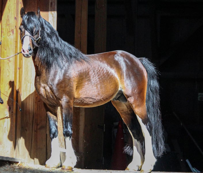 Welsh Cob Section C, stallion, 18 years old, dark bay with four white feet, 13.3 hh. Eignung: Dressage – Trail riding – Jumping – Breeding Im Auftrag des Kunden: Lord William… …fängt sofort durch seine unvergleichliche Präsenz und Eleganz den Blick ein und verkörpert den typischen ursprünglichen Typ des Welsh C Ponys. Er stammt aus alten, fundierten englischen Blutlinien, was sich in seinem Erscheinungsbild widerspiegelt. Ein äußerst charaktervoller Ponyhengst, der in England unter dem Namen „Three-B William“ gekört wurde. Er verfügt über überdurchschnittliche Grundgangarten und ein sehr feines, aufmerksames Wesen. Lord William ist solide ausgebildet und lässt sich von Jugendlichen und kleinen Erwachsenen leicht in den Grundgangarten reiten. Sein schnelles Auffassungsvermögen und sein Vertrauen machen die tägliche Arbeit mit ihm zu einer wahren Freude. Unter dem Sattel und an der Hand wurde er in der klassischen Dressur bis zur Basis ausgebildet, steht fein an den Hilfen, springt mit Freude die Geländestrecke und ist gern bei Ausritten dabei. Er hat bereits an mehreren Hofkursen teilgenommen und konnte so manchen jungen Reiter dabei unterstützen, beispielsweise das Reitabzeichen zu bestehen. Zudem ist er an das typische Hofleben gewöhnt, inklusive Kinder, Hunde, andere Pferde, die kommen und gehen, sowie das Reiten in der Bahn mit anderen Pferden – all das nimmt er sehr gelassen hin. Mit diesem Miniaturprinzen ziehen Sie alle Blicke auf sich! Für uns ist er ein „Lichtwesen“ und zeichnet sich durch seinen seelenvollen Charakter aus, der menschliche Züge aufweist. Nur wer dafür empfänglich ist, wird ihn wirklich zu verstehen wissen. Alle bisherigen Fohlen von Lord William tragen unübersehbar seine „Stempel“ – unverkennbar durch ihre Abzeichen, das schöne Köpfchen, Ausdruck und den fabelhaften Charakter. Seine Nachkommen verschiedener Altersgruppen sind vor Ort zu besichtigen. Selbstverständlich wurde er regelmäßig entwurmt, osteopathisch überprüft und dem Hufschmied vorgestellt (Barhuf). Er ist sozialisiert und hat bereits mit einem Wallach zusammengelebt. Aktuell lebt er im Offenstall und schuppert sich im Sommer nur leicht. Standort: Deutschland – 83075 Au – Bad Feilnbach Weitere Infos, Bilder und Kontakt ausschließlich unter: https://wow-pferd.de/horse/lord_william/ Mobil: +49 151 15227320