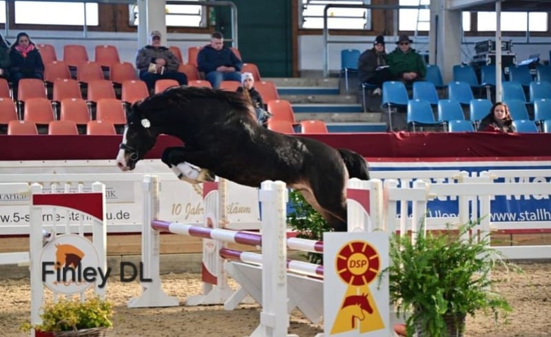Finley DL *31.03.2021 Stm. 1,48m v. Bundesprämienhengst MBS Royal Flash aus einer Mutter von H-S Hot Playboy Finley erhielt im Herbst 2024 sein positives Körurteil ehe er im Frühjahr 2025 dann allerdings kastriert um später als Reitpferd verkauft zu werden. Der Wallach begegnet neuen Dingen mit viel Neugier und Mut, bewältigt ohne Probleme einen Gelassenheitsparcours mit lauter gruseligen Dingen und ist extrem Menschenbezogen und verschmust. Er kennt Bodenarbeit, Handarbeit, Langzügelarbeit, Fahren vom Boden, Doppellonge, Stangen- & Cavalettiarbeit an der Longe, Spazieren gehen, Handpferd, Freispringen sowie freies Reiten in Schritt und Trab und meistert all das motiviert und fein in der Kommunikation. Die jetzigen Besitzer kauften Finley vergangenen Sommer direkt vom Züchter für deren 12J. Tochter aufgrund seines tollen Charakters. Leider wurden sie hier in sofern schlecht beraten, dass ein rohes Pferd und Kind auf RWB Niveau nicht die beste Konstellation darstellen. Durch den dann folgenden Beritt mit viel Stress und Druck war Finley derart überfordert, dass der Wallach niemanden mehr aufsteigen lies und Panik vor Gerte/Peitsche und Berührungen an der Hinterhand hatte, was die Situation für die Familie noch schwieriger machte. Seit Herbst steht Finley nun bei uns zum „Neustart“. Wir haben ihn sehr schonend und kleinschrittig von grundauf neu ausgebildet, ihm die Angst vorm Reiter sowie Gerten und Berührungen genommen und nun ein Pferd, welches durch seine freundliche Art und seine positive Arbeitseinstellung täglich dazulernt. Man kann ganz alleine ohne Bodenpersonal aufsteigen, er wartet geduldig bis man sich sortiert hat und läuft ganz artig in Schritt und Trab. Auch Langzügelarbeit und Doppellonge haben wir erarbeitet, hier zeigt er sich ebenfalls ganz unkompliziert und könnte in den passenden Händen sicherlich sowohl als Reit- als auch Fahrpferd gefördert werden und das in diversen Disziplinen, sei es Dressur, Springen, Working Equitation oder Trail. Finley kennt sowohl Englisch- als auch Westernausrüstung da wir in beiden Bereichen ausbilden lernen unsere Jungpferde auch von Anfang an verschiedene Ausrüstungsgegenstände kennen. In der Herde ist Finley eher dominanter, ordnet sich aber auch gut unter. Er stand hier mit verschiedenen Wallachen zusammen, auch direkt neben Stuten jedoch noch nicht gemeinsam in gemischter Herde. Er ist derzeit barhuf, brav beim Schmied, steigt artig in den Anhänger und ist auch sonst rundum unkompliziert. Aus unser Anraten wird nun für Finley ein passendes zu Hause bei Jungpferdeerfahrenen Menschen gesucht und für die Tochter ein erfahrenes Lehrpferd. Finley wird ausschließlich in passende Hände und eine artgerechte Haltung verkauft. Hier gilt absolut Platz vor Preis da der Familie sehr wichtig ist, dass er es in Zukunft gut hat. Eine AKU mit beliebigem Umfang kann selbstverständlich von Kaufinteressenten in Auftrag gegeben werden. Auf Wunsch ist es möglich, ihn zur weiteren Ausbildung noch bei uns zu lassen.
