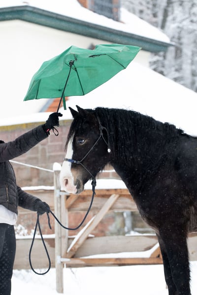 Finley DL *31-03-2021, 1,48 m hoog Fokproduct van de staatsprijshengst MBS Royal Flash, uit een moeder van H-S Hot Playboy Finley kreeg in de herfst van 2024 zijn positieve keuring, maar werd in het voorjaar van 2025 gecastreerd om later als rijpaard verkocht te worden. De ruin benadert nieuwe dingen met veel nieuwsgierigheid en lef, voltooit zonder problemen een rustparcours met allerlei spannende elementen en is uiterst mensgericht en knuffelbaar. Hij kent grondwerk, handwerk, longeerwerk, rijden vanaf de grond, dubbele longe, cavaletti- en stangenwerk aan de longe, wandelen, handpaard, vrijspringen en vrij rijden in stap en draf. Hij doet al deze dingen met motivatie en een fijne communicatie. De huidige eigenaren kochten Finley afgelopen zomer rechtstreeks van de fokker voor hun 12-jarige dochter vanwege zijn geweldige karakter. Helaas werd er in dit geval slecht geadviseerd, omdat een onbeleerd paard en een kind op RWB-niveau niet de beste combinatie vormen. Door de daaropvolgende training met veel stress en druk raakte Finley zodanig overbelast dat hij niemand meer opliet en paniek had voor zwepen en berijdershanden, evenals voor aanrakingen aan de achterhand. Dit maakte de situatie voor de familie nog moeilijker. Sinds herfst staat Finley bij ons voor een ‘nieuwe start’. We hebben hem heel voorzichtig en stapsgewijs opnieuw opgeleid, zijn angst voor ruiter, zwepen en aanrakingen weggenomen en nu is hij een paard dat door zijn vriendelijke aard en positieve werkhouding dagelijks blijft leren. Hij kan zonder grondpersoon opstappen, wacht geduldig tot je je hebt gesorteerd en loopt netjes in stap en draf. Ook longeerwerk met lange teugel en dubbele longe hebben we aangeleerd. Hij toont zich daarbij heel makkelijk en in de juiste handen zou hij zeker geschikt zijn als rij- en aanspanningspaard, bijvoorbeeld voor dressuur, springen, working equitation of trail. Finley kent zowel Engels- als westernuitrusting, omdat wij in beide disciplines opleiden en onze jonge paarden vanaf het begin verschillende uitrustingsstukken leren kennen. In de kudde is Finley eerder dominant, maar hij onderwerpt zich ook goed. Hij heeft hier gestaan met verschillende ruin en direct naast merries, maar nog niet in een gemengde kudde. Hij is momenteel hoefbevangen, braaf bij de hoefsmid, stapt netjes in de trailer en is verder heel makkelijk in alles. Op ons advies zoeken we nu een passend thuis voor Finley bij mensen met ervaring in jonge paarden, en voor de dochter een ervaren leerschaap. Finley wordt uitsluitend verkocht aan passende mensen en een diervriendelijke huisvesting. Hier staat absoluut de mens en het welzijn van het paard voorop, prijs is ondergeschikt. Het is voor de familie zeer belangrijk dat hij het in de toekomst goed zal hebben. Een hoefonderzoek (AKU) met willekeurig omvang kan door geïnteresseerden op verzoek worden aangevraagd. Indien gewenst, kan hij ter verdere opleiding ook bij ons blijven.
