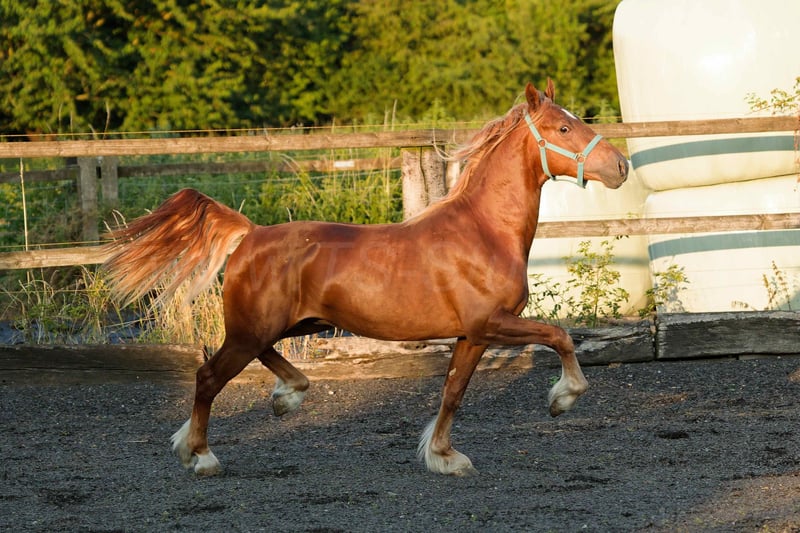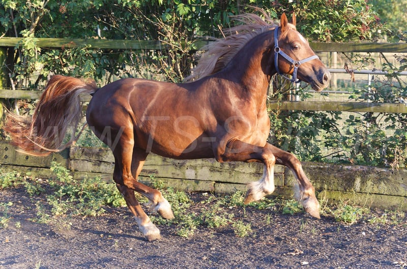 Stilig, elegant och smidig Welsh Cob hingst med bra rörelser. För närvarande 146 cm Stm.