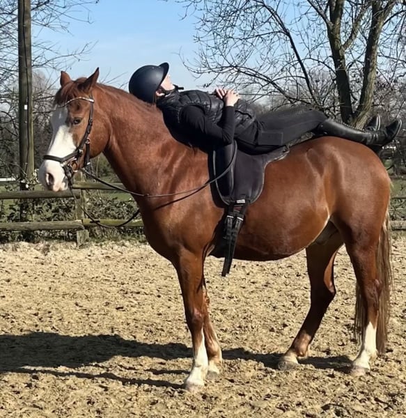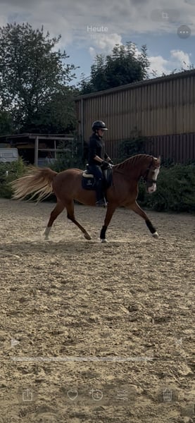 Schweren Herzens verkaufe ich meinen 9 Jährigen Französischen Wallach, aufgrund von Privaten Umständen. Hell Boy DLP ist ein 155cm großer Wallach. Im Pass steht er als Mix. Verkauf nur wenn alles passt, in ein 5 Sterne zu Hause. Gerne Offenstall, Aktivstall oder Box mit Täglichem Auslauf. Bei mir stand er sowohl mit Stuten als auch mit Wallachen zusammen. Am besten hat es ihm in einer Großen Herde gefallen. Hell Boy wurd bei mir des öftern von einer 6 Jährigen an der Longe und einer 8. Jährigen frei geritten. Er wurde von mir Dressurmäßig bis A ausgebildet. Anfang L Lektionen. Er läuft sicher in allen drei Grundgangarten. Er ist sehr fein an der Hand, er ist nicht triebig aber auch nicht zu Flott. Aktuell befindet er sich nicht richtig im Training und wurde seit 4 Monaten nur gelegentlich geritten. (Wegen Zeitmangel) Man kann Problemlos mit ihm in Gruppen ausreiten gehen, ich gehe auch mit ihm alleine. Unarten wie Losrennen oder Bocken hat er nicht. Hell Boy mag kein Springen! Er ist super an der Longe, Doppellonge kennt er auch. Hell Boy hat leider einen genetisch Bedingten Senkrücken, welcher bei Welsh Ponys/ Pferden leider oft vorkommt. Er hat bei mir keine Rückenprobleme oder schmerzen gehabt! Aufgrund des Rückens allerdings nur für kleine Erwachsene/ Jugendliche/ Kinder bis 60 Kilo geeignet. Er ist Barhufer. Allerdings hat Hell Boy aufgrund von Misshandlung beim Hufschmied Angst. Meine Hufbearbeiterin kann alle vier Hufe ausschneiden und Raspeln, nur auf den Bock möchte er nicht. Daran üben wir aber. Er geht alle 8-9 Wochen zur Hufbearbeitung. Er geht Problemlos in den Hänger und Führanlage. Im Zeitraum von 2020 bis jetzt hatte Hell Boy keine Gesundheitlichen Probleme wie Lahmheiten, Koliken oder sonstiges. Er hat einen 16 Zoll Sattel, es passt auch kein Größerer. Der Sattel kann gegen Aufpreis miterworben werden. Sowie weiteres Zubehör… Desweiteren liegt ein Professionelles Gutachten über ihn aus 2024 vor. Aufgrund der oben genannten Gründe weit unter Wert abzugeben!