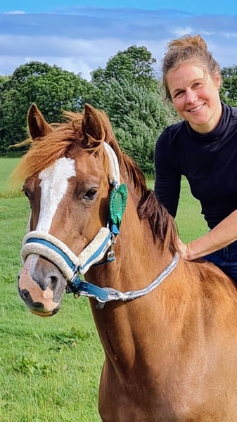 Princess Charlotte, alias Greta, è una bellissima cavalla baia scura che è già stata presentata ai Campionati Tedeschi di Ciclismo (CICOP-L**) e nominata dal selezionatore nazionale per il Campionato Nazionale Giovanile di Salto a 1.30. Abbiamo acquistato Greta all'epoca come pony di misura finale per mia figlia e poi l'abbiamo data in leasing durante il periodo del Corona. 9 mesi fa è tornata da noi e ora purtroppo dobbiamo cederla per motivi di tempo. È sempre dalla parte del cavaliere e desidera sempre compiacere. È una perfetta insegnante per il salto e il cross-country. Con i bambini piccoli è molto calma, ha ottenuto punteggi di 8 anche con loro nella categoria E.
