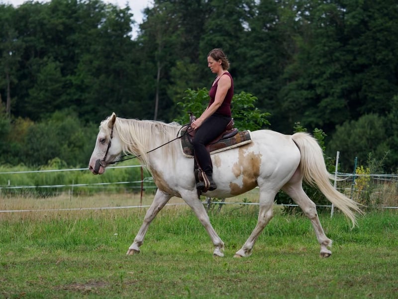 Cleo is a Welsh Cob x English Warmblood, born in 07/2014 in Wales, approximately 153cm tall, and was imported raw to me in 06/2021. As she arrived half-wild, I took a lot of time to build a relationship and work on the ground, incorporating elements of academic riding, horsemanship, liberty work, clicker training, and a solid basic education. In spring 2025, she spent three months in professional training. She is very kind with trailers and hoof care (barefoot). She has previously been regularly ridden in the field at all gaits, both alone and in groups, and has also been on a small trail ride. In the herd, she is rather low-ranking and social. During training, kissing spines were diagnosed. She has been trained accordingly. The trainer, who is very experienced in the rehabilitation of sport horses, believes that with appropriate back musculature, she can be a rideable horse, but not suitable for trail rides (my plans). Otherwise, she is health-wise robust. I am looking for the right person for this special horse. She is a mix of unicorn and wild horse. On one hand, she is a very sensitive, eager-to-learn, and cooperative mare. It is a great joy to work on lessons with her, as she listens well, is highly motivated, and learns quickly. Professionals have always been impressed by these qualities. In the field, she is not very spooky; during previous rides, as a lead horse, on walks, or cycling trips, she is mostly well-behaved. With her full mane, two-colored eyes, and beautiful head, she possesses an ethereal beauty. On the other hand, she can be easily unsettled by misunderstandings, too much energy, or pressure, and can react impulsively. Her stress regulation has been worked on intensively during professional training. However, she is absolutely not a beginner's horse! A confident person who is looking for a challenge and enjoys working on lessons with their horse, where riding is not the primary focus, can be very happy with this fine mare. I can imagine her for the work of academic riding, but also the idea of "being with horses," the circus arts, and other tasks that focus on detail. Unfortunately, my passions and plans do not align with her, which is why I am looking for a more suitable place for her. I will only let Cleo go if I truly find HER person. Experience in training horses, horse-friendly keeping, and handling are prerequisites. Home before price.