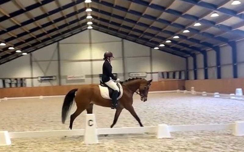 Buitenkans Met pijn in ons hart willen we deze fantastische E pony aanbieden voor een fijne nieuwe plek, wegens overgang naar paard. Meedenbliks Gwen is na de eerste 8 jaar lekker in de wei te hebben gelopen en succesvolle veulens heeft gekregen bij ons onder het zadel gekomen en met 2 jaar is ze naar het 1.10 springen gereden en L 2 dressuur. Gwen is een fijne, lieve talentvolle merrie die veel heeft gezien. Een aantal keren kampioen geweest, Gelderse kampioenschappen gereden en geselecteerd geweest om op Outdoor Gelderland te mogen springen. Gwen heeft een sport predicaat en een super mooi gefokt papier. Haar moeder is de top merrie Orchard Gala (vader Orchard Boginov) die met een aantal goedgekeurde zonen nog steeds succes vol is in de fokkerij. Maar vader is Compagnons Humphrey Gwen is Wehls gefokt en 1.52. Hoewel ze is geboren in 2012, is ze doordat ze de tijd heeft gekregen volledig uit te groeien voor ze onder het zadel kwam. Ze lijkt daarmee een stuk jonger, en kan ze nog jaren mee. In de tijd dat ze bij ons is geweest en de tijd daarvoor is ze blessure vrij geweest. Zover wij weten heeft ze geen gebreken. Gwen is fijn en makkelijk in de omgang en daarbij is ze ook nog super mooi en elegant. K.K. Bij interesse zie ik graag een bericht voor meer info😊
