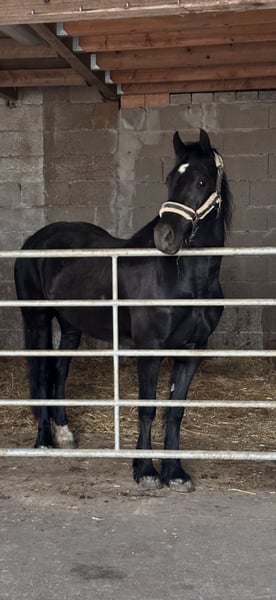 Due to a career change, my 2019-born Welsh Cob mare from Friedrichshof Hot Twix out of the Lagona Whitney (Hendreforgan Viscount x Abercippyn Owen) is looking for a suitable new home. She is a stunning, healthy, and fully mature black mare. She is currently pregnant by Copain de Xhoris, with an expected foaling date of June 2, 2026. She was naturally covered and accepted the stallion without any issues. Currently still quite green and minimally trained, I see her more suited for breeding or for experienced handlers who enjoy groundwork rather than riding. She is gentle in handling but can become restless and stressed when asked to do more. She enjoys groundwork exercises very much. Therefore, she is not suitable for beginners or those looking for a cheap project to finish and resell. She is familiar with lunging, girth, saddle, bridle, double lunge, rider weight, fluttering ribbons, mats, and mounting blocks. She is also comfortable in the field, riding arena, and outdoor riding area, although she tends to get easily stressed in indoor riding halls. She is only available for outdoor turnout. By arrangement, she can stay where she is now for foaling. She has experience with mixed herds as well as with only mares and has always behaved well within the herd. No dealers or riding schools, please.
