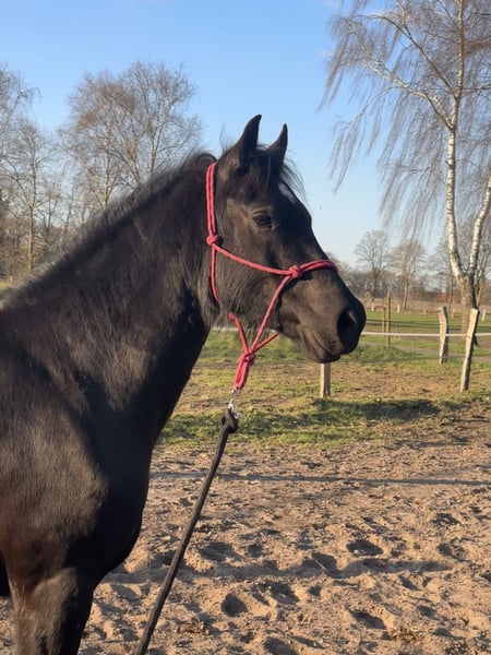 Durch Reitsportaufgabe sucht meine 2019 geborene Welsh Cob Stute von Friedrichshof Hot Twix aus der Lagona Whitney (Hendreforgan Viscount x Abercippyn Owen) nach ihrem passende Zuhause. Sie ist eine bildschöne, gesunde und im Endmaß stehende Rappstute. Sie ist tragend von Copain de Xhoris und hat Abfohltermin zum 02.06.2026. Sie wurde im Natursprung gedeckt und hat sofort aufgenommen. Bisher noch roh und wenig gearbeitet, sehe ich sie eher nicht unter dem Sattel sondern in der Zucht oder bei Menschen die viel Spaß und Erfahrung in der Bodenarbeit haben. Sie ist lieb im Umgang aber wird schnell unruhig und gestresst sobald man etwas von ihr möchte. Bodenarbeit macht ihr jedoch sehr viel Spaß. Daher auch nicht für Anfänger oder Schnäpchenjäger die was günstiges zum fertig machen und verkaufen suchen. Longe, Gurt, Sattel, Trense, Doppellonge, Reitergewicht, Flatterband, Matte, Podest usw kennt sie alles. Ebenso Gelände, Reithalle und Reitplatz, wobei sie sich in Reithallen jeglicher Art schnell stresst. Sie wird nur in Offenstallhaltung abgegeben. Nach Absprache kannst sie zum abfohlen dort stehen bleiben wo sie jetzt steht. Kennt sowohl gemischte als auch reine Stutenherde und ist bisher immer artig in der Herde. Kein Händler und kein Schulbetrieb.