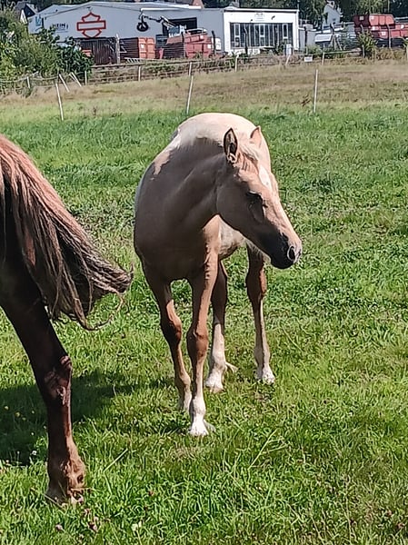 Tolle bewegungsstarke Stute mit viel Kaliber sucht Bestplatz.Vaiana ist sehr menschenbezogen und kinderlieb sie geht brav am Strick kennt alles vom Trecker über Hunde und Radfahrer wird täglich gehändelt und ist schon recht cool.Sie eignet sich für alle Sparten des Reitsports beide Eltern sind vor Ort Videos auf Wunsch über Whats app
