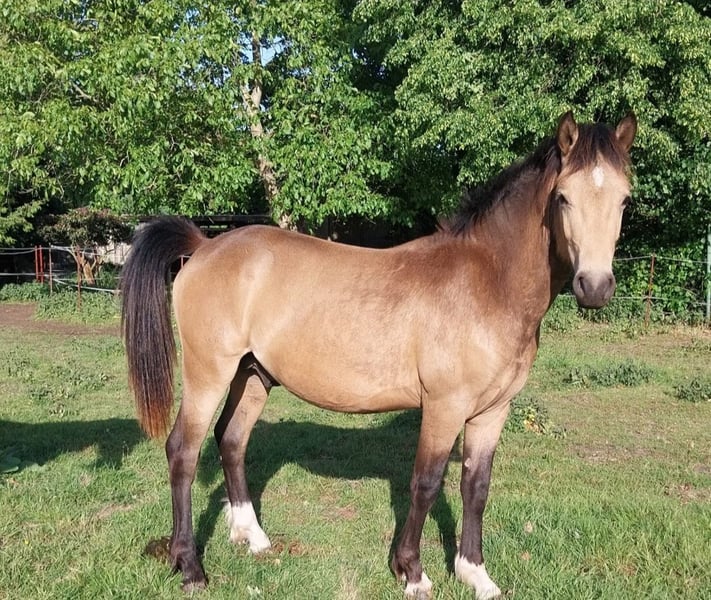 Aus Zeitmangel weit unter Wert abzugeben. Interessant für die Kutsche und dem Springsport. Mit seiner Coolen Art, unerschrocken und ruhig ist er auch von Anfängern gut zu händeln. Er wird noch aufhellen und ein heller Buchskun werden, da er ein Cremgean von seinem Vater geerbt hat was ihn weiter aufhellen lässt. Ein absoluter Hingucker später im Sport vor der Kutsche oder als Freizeitpferd. Beide Elternteile vor Ort. Aus Hobbyzucht. Gesund, Gechippt, Geimpft, bei Kostenübernahme kann er noch gelegt werden und bis zur Genesung bei uns stehen bleiben. Ich wünsche mir für ihn fördernde Hände.