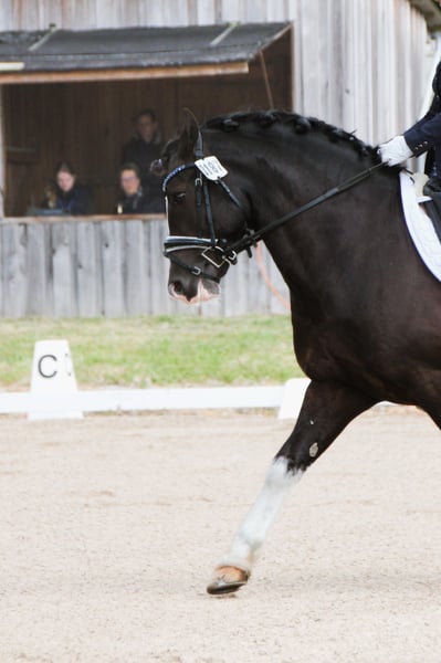 Möhlenbeeks Bandit ist ein 8-jähriger, gekörter Welsh Cob (Sektion D) Hengst mit einem Stockmaß von 1.44m. Er vereint sportliches Potenzial, Leistungsbereitschaft und einen außergewöhnlichen Charakter. Gibt es etwas was Bandit nicht kann? Offensichtlich nicht. Egal ob Dressur, Springen, Gelände oder Zucht – Bandit lernt schnell, ist immer bereit für neue Aufgaben und möchte seinem Menschen gefallen. Bandit besticht nicht nur durch sein aussehen sondern auch durch seinen tollen und absolut nicht hengstigen Charakter, eine tolle Arbeitseinstellung und klare, bequeme Grundgangarten. (Ist auch von Kindern zu händeln und zu reiten!) Im Springen zeigt er einen gewaltigen Sprung, ist mutig und will immer auf die andere Seite – Unterbauten und Wassergräben beeindrucken ihn nicht. Auch auf der Geländestrecke zeigt er sich mutig und verlässlich, überbaute Gräben und durchs Wasser Galoppieren stören ihn ebenfalls nicht. Alleine oder in der Gruppe ausreiten, Baden gehen, ohne Sattel und nur mit Halfter und Strick reiten, alles kein Problem für ihn. Bandit steht Nachts in seiner Box und Tagsüber alleine auf seinem Paddock. Andere Hengste, Wallache oder auch Stuten stören ihn sowohl in der Box als auch auf dem Paddock nicht als Nachbarn. Außerdem ist er Verladefromm, schmiedefromm, regelmäßig entwurmt und geimpft. (Zucht)erfolge: • Gekört am 08.02.2020 in Neumünster • Absolvierung der 30-Tage-Stationsprüfung (Zuchtrichtung Reiten) vom 08.08.–09.09.2021 • 5. Platz gesamt Wertung, 2. Platz bei den Welsh Ponys bei der FN-Bundeshengstschau für Sportponys in Berlin am 20.01.2023 In Seiner ersten Turniersaison hat er in der Dressur Platzierungen bis zur Klasse L erzielen können und im Springen Erfolge bis zur Klasse A holen können. Außerdem gab es für uns Bronze in der Kreismeisterschaft für Ostholstein in der LK5 Dressur und LK6 Vielseitigkeit. Im Springen ist das Potenzial über die Klasse A hinaus vorhanden und die Lektionen über die Klasse L hinaus werden weiter gefestigt. Sein erstes E Gelände hat Bandit souverän gemeistert und wurde erste Reserve. Preis ändert sich bei weiter Ausbildung und Erfolgen. Es ist uns wichtig das Bandit nicht nur sportlich gefördert und gefordert wird, sondern in seinem neuen zu Hause auch lieb gehabt wird und dein neuer bester Freund wird. Bandit wird im Auftrag Verkauf. Er ist noch im Besitz seines Züchters und wurde mir für seine Ausbildung zur Verfügung gestellt. Bei ernsthaften Interesse freuen wir uns über eine Nachricht oder einen Anruf – Videos & weitere Infos gerne auf Anfrage.