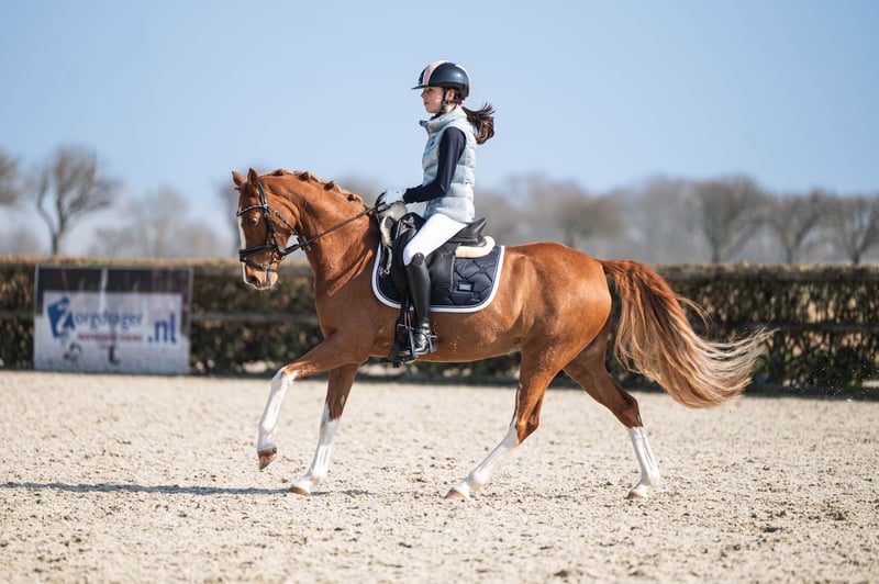 Duinveldts Autumn (Rose) Met pijn in het hart bieden wij onze bijzondere Welsh merrie Duinveldts Autumn (Rose) te koop aan. Een pony die alles heeft: kwaliteit, ervaring en een karakter waar je op kunt bouwen. Rose is Z2 dressuur geklasseerd tussen de ponys met meerdere winstpunten (altijd winst in het Z2). Zij is een echte schoolmaster, die jonge ruiters met vertrouwen door de baan begeleidt, maar ook voor een ambitieuze ruiter veel te bieden heeft. Onder het zadel beschikt Rose over veel power en werklust, zonder haar eerlijke en betrouwbare instelling te verliezen. Ze laat je nooit in de steek, ook niet op wedstrijd. Haar sterke wedstrijdmentaliteit maakt haar een pony waar je met een gerust hart de ring mee in gaat. In de omgang is Rose een droom: Lief en betrouwbaar op stal Geen stalgebreken Netjes, schoon en makkelijk in de dagelijkse verzorging Houdt van buitenritten en strandritten Rose is recent röntgenologisch goedgekeurd, inclusief hals en rug, zonder bemerkingen. Herkeuren is geen probleem (kosten koper). Afstamming Rose is een Welsh pony met sportpredicaat en stamt af van de bekende hengst Orchard Boginov, wat haar kwaliteit en bewegingsmechanisme duidelijk verklaart. Reden van verkoop Onze dochters groeien uit haar en worden helaas te groot. Zadel en toebehoren eventueel over te nemen tegen meerprijs