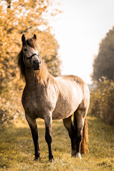 *** Heavenlysmile's Yen-Ai *** Notre Yen-ai est une jument merveilleusement belle. Elle aura un an à la fin juillet et aime toujours téter sa mère ;-) Elle mesurera entre 1,60 et 1,63 m, tout comme son frère et sa sœur pleine (voir les dernières photos). Yen-Ai est un poulain spécial pour nous, issu de notre propre élevage depuis trois générations ! Notre passion est entièrement investie en elle et cela se reflète dans tout <3 Yen-Ai est élevée pour le sport et les loisirs. C'est un type de cheval très puissant avec beaucoup d'énergie. Une véritable beauté, un joli coup d'œil ! Elle porte le gène en elle. Cela signifie qu'elle aura en hiver un beau pelage plein de mini-boucles et une belle crinière et une queue pleine de boucles. Elle est également hypoallergénique. Nous élevons des Curly Horses depuis 11 ans. (17 ans avec des Welsh Cobs :) ) Notre objectif est d'élever un cheval très amical et polyvalent, hypoallergénique. Cela convient aux jeunes et aux moins jeunes, pour les loisirs et le sport de haut niveau ! Nous offrons à tous nos animaux les meilleurs soins possibles, avec les vaccinations appropriées et des soins des sabots en temps voulu. Nos prix indiqués sont hors TVA, inspections et frais de transport. Si vous souhaitez plus d'informations ou avez des questions, n'hésitez pas à m'envoyer un message !