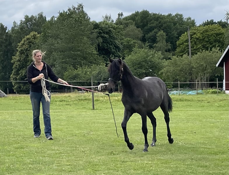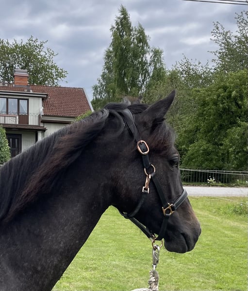 Quick, easy to train & proven jumping genetics Iris is a very promising Welsh Part-Bred (WPB) young pony for riders looking for a future competition partner with both talent and personality. She currently measures 136 cm and is expected to reach approx. 140 cm, making her a maxed-out C-pony – ideal for sport. She was exceptionally easy during breaking-in, straightforward and cooperative from the very start. Iris is quick and intelligent. She enjoys working, learns fast and shows the kind of natural responsiveness that makes her exciting for the competition arena. At the same time, she is a genuine heart pony – kind, social and people-oriented. Training & Temperament • Backed autumn 2025 by an adult rider • Ridden in all three gaits • Confident to ride alone, also out hacking • Well handled and environmentally trained She is raised in hilly pastures, giving her strength, coordination and durability. She has never been injured, is in excellent condition with a shiny, healthy coat, and presents very well. Proven performance genetics: Iris’ full sister was awarded a Jumping Diploma, highlighting the strong jumping potential in this line. Iris is social, attentive and responsive – she comes when called by her name, showing her strong connection to people and eagerness to cooperate. Pedigree Sire: Speykbosch Diablo (WPB) Dam: Cisco Facts • Born: 2023 • Height today: 136 cm • Expected final height: approx. 140 cm (C-pony) Iris has the potential to become someone’s future competition pony, while also being a wonderful partner and stable favourite. A serious, long-term home is essential. 📍 Located in Sweden