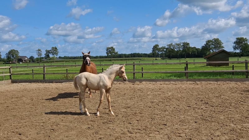 Lief en aanhankelijk veulen met dre goede gangen. Dol op aandacht en poetsen. Is dagelijks in de hand en loopt netjes mee aan een halstertouw. Ook al gewend om dagelijks hoefjes te krabben. Oudere volle zussen en broers zijn fijne, betrouwbare en brave allrounders, die fijn kunnen bewegen, snel leren en graag samenwerken. Kortom, de ideale pony voor een wat groter kind, tiener, maar ook voor een jong volwassene.