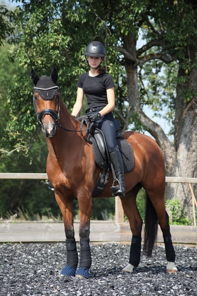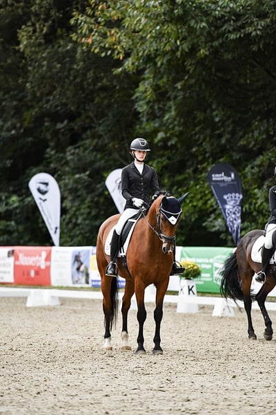Ik verkoop mijn 10-jarige ruin Andy. Andy is een echte allrounder, of het nu gaat om dressuur, eventing, working equitation, springen of buitenritten aan zee, hij heeft overal plezier in, is goed te rijden en leert snel nieuwe dingen. Andy is gefokt voor dressuur en heeft een afstamming van First Ampere x Di Versace. Ik rijd hem voornamelijk in de dressuur. Hier is hij L-niveau, en beheerst ook de meeste M-lessen zoals traversalen, renvers en vliegende wissels. Op wedstrijden heb ik hem tot nu toe voorgesteld in de L-dressuur en in de A-springen. Het hele wedstrijdverloop gaat -met en zonder tweede paard- soepel en ontspannen. Laden, rijden, wachten op de trailer doet hij routinematig. Ook vrijheidswerk, halsringrijden en buitenritten met en zonder zadel doe ik regelmatig. Hier is hij ook braaf. Andy is super geschikt voor working equitation. Hij kent alle hindernissen en doet ze heel goed. Hij is wendbaar en in balans, goed aan het been, en licht te rijden en goed opgeleid in de dressuur, wat hem ideale voorwaarden geeft voor deze discipline. Andy heeft de dierenarts tot nu toe alleen nodig gehad voor halfjaarlijkse vaccinaties en jaarlijkse tandbehandelingen, hij is nog nooit kreupel of ziek geweest en heeft geen ijzers nodig, dus hij is robuust en gezond. Er zijn recente goede röntgenfoto's van september '25 beschikbaar. Voor Andy zoek ik een liefdevol thuis met veel weidegang, zowel in de zomer als in de winter. Een huisvesting waar hij alleen en voor een paar uur naar buiten kan, komt voor mij niet in aanmerking. Hij staat bij ons in een open stal in een kleine gemengde kudde van 6 paarden en is eerder ranghoog. Boxhuisvesting kent hij ook. Proefrijden is vanzelfsprekend mogelijk tegen een bijdrage van 30€. Voor verdere vragen beantwoord ik deze graag telefonisch. Ik heb ook video's die ik graag kan versturen.