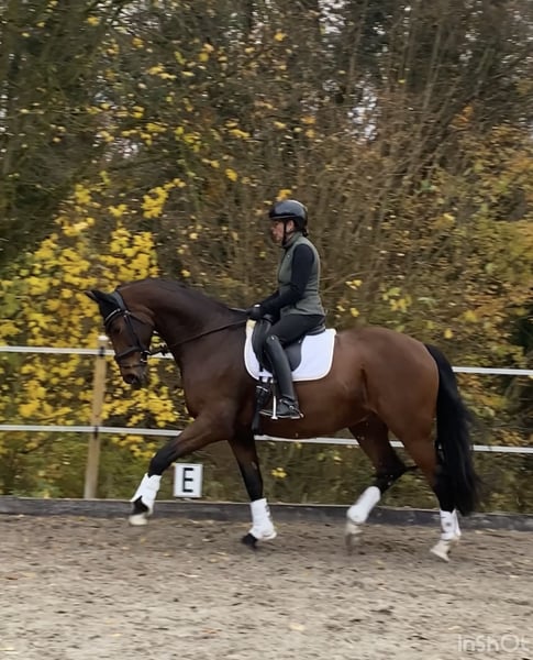Versatile gelding with a focus on dressage and excellent trail and jumping qualities This charming gelding impresses with solid dressage training and a love for varied work. He thoroughly enjoys lunging, cavaletti exercises, and small jumps; however, he has not been further trained in jumping competitions. In the field, he proves to be sure-footed and relaxed – ideal for leisurely rides but always ready for a brisk canter. He is familiar with work on the bit and was originally approved as a double-licensed stallion for the Westphalian breeding association. Due to his previous experience, he is not suitable as a male horse or for competition; he requires a sensitive, experienced rider who appreciates his qualities. Perfectly suited for ambitious leisure riders seeking a versatile, light-ride, and sensitive horse who enjoys varied work. Note on keeping: The gelding is accustomed to daily turnout in summer and winter. We wish to continue this type of management, as it suits him very well. Video available upon request
