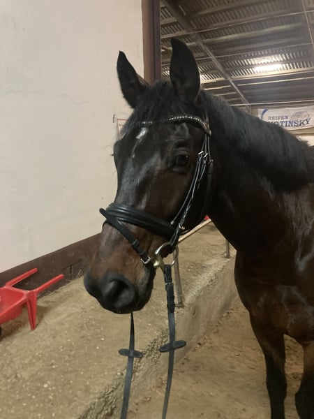 Cockney is a beautiful, well-balanced 14-year-old Westphalian gelding. He stands at 170 cm. As a true all-rounder, he comfortably goes out on hacks (alone or with other horses), and has placements in L-level show jumping as well as A-level dressage. However, he is being sold as a leisure horse, and we are looking for a home with plenty of turnout. Large stables with lots of activity tend to stress him, as does keeping him in a box alone. Cockney requires consistent, confident handling and is therefore not suitable for children or insecure riders. He has no issues with the farrier or loading. The last-year's health certificate (AKU) is available. He tends to nip when tied up. If interested, I am happy to send additional photos/videos. Please contact me only by phone at 0176 82413724.
