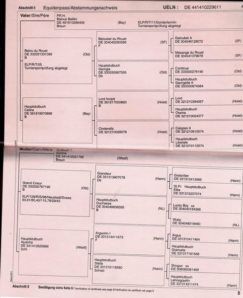 V: Balous Bellini x MV: Grand Coeur, German Riding Pony In vendita questa splendida, simpatica gelding con genealogia di prima scelta, tre ottimi passi di base e molto talento per il salto. „Balous Baron“ è un cavallo molto appariscente, sia sotto la sella che a mano, con un aspetto imponente. „Balous Baron“ è un gelding molto affabile, bellissimo, di circa 15 anni, di statura 172 cm, in stile stallone. Nonostante l’età, è ancora completamente in forma e assolutamente lontano dall’essere un “cavallo vecchio”. È nato dal suo allevatore, dove ha vissuto fino a poco tempo fa. È stato regolarmente montato fino a circa 8 anni, poi solo in modo sporadico. Recentemente il suo allevatore, ormai anziano, è deceduto e il gelding è con me da sei settimane. Montato, è un sogno, con energia e entusiasmo, ma assolutamente maneggevole. I suoi passi di base sono sopra la media, in particolare il trotto, con una splendida, attiva posteriorità. Sotto la sella, si presenta molto bene e fa risaltare il cavaliere. Niente buck, niente passaggi irregolari. A causa della sua genealogia sensibile e della mancanza di esperienza, non è adatto ai principianti. In maneggio, „Balous Baron“ è molto ben educato e un vero tesoro. È socialmente compatibile e amichevole con gli altri cavalli. Conosce il pascolo, il paddock, la longe e si lascia facilmente longare. Attualmente vive in box con finestra, con uscita quotidiana in paddock insieme al suo compagno, fa anche lavoro alla longe, viene montato e saltato. Per questo cavallo dolce, affettuoso e simpatico, desidero trovare una buona casa con molte attività e spazi aperti. Sono aperta a richieste gentili. Se interessati, posso inviare alcuni video tramite WhatsApp. Sig.ra Jana, Cell: 0170-9 333 000 La vendita avviene su incarico.